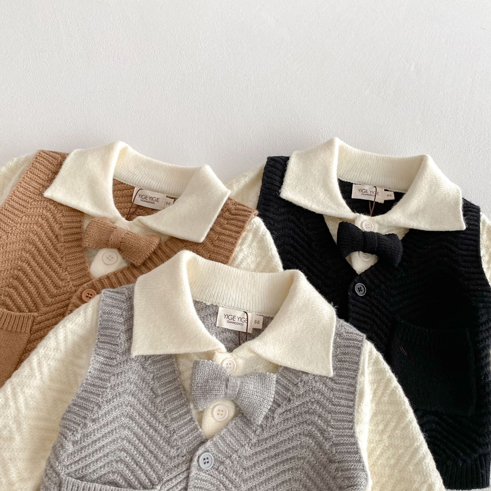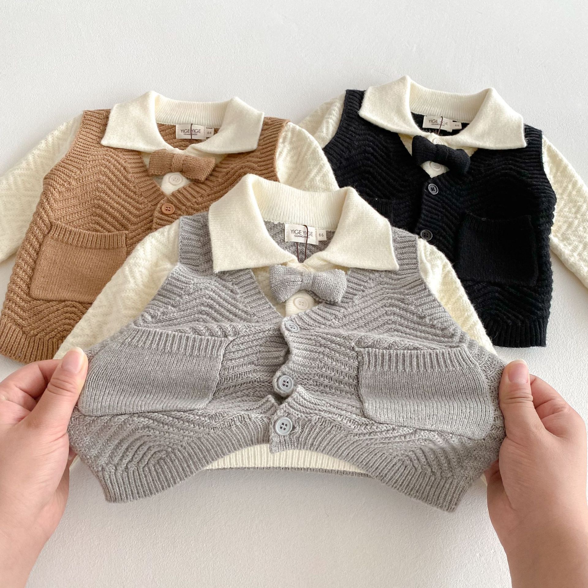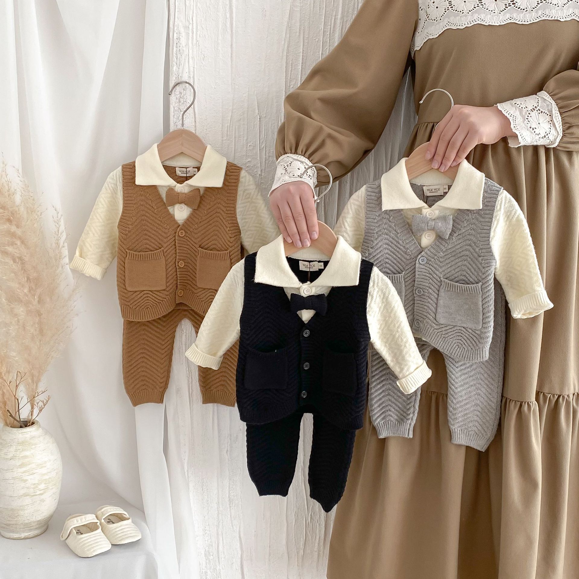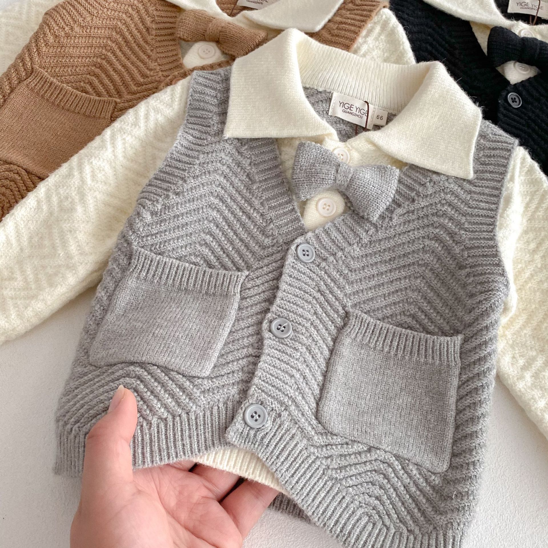 Ins 새로운 아기 소년 3 색 스웨터 아기 나들이 니트 양복