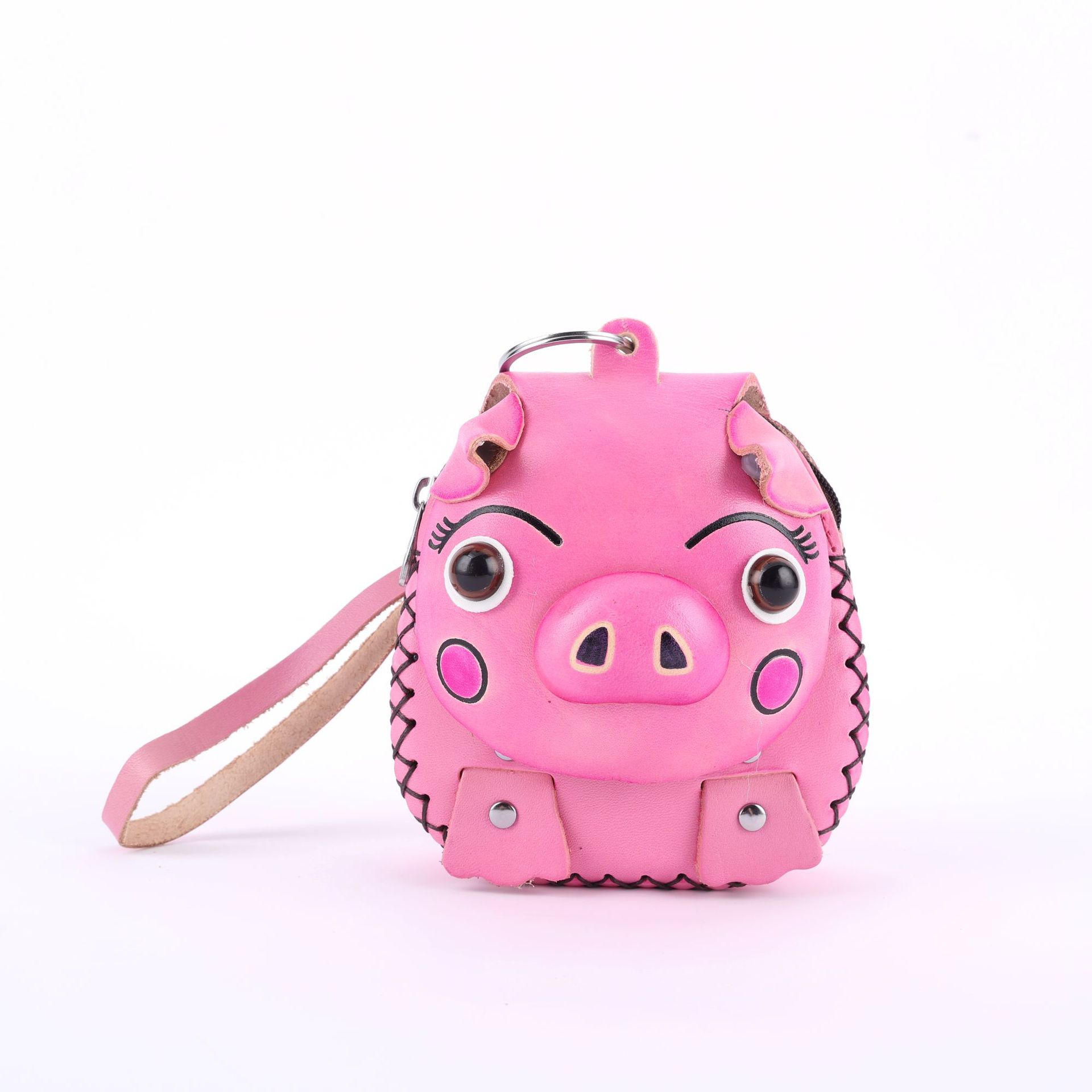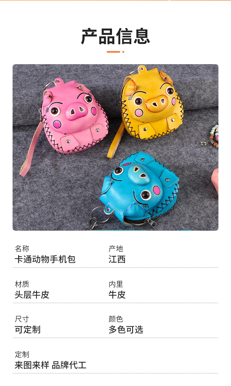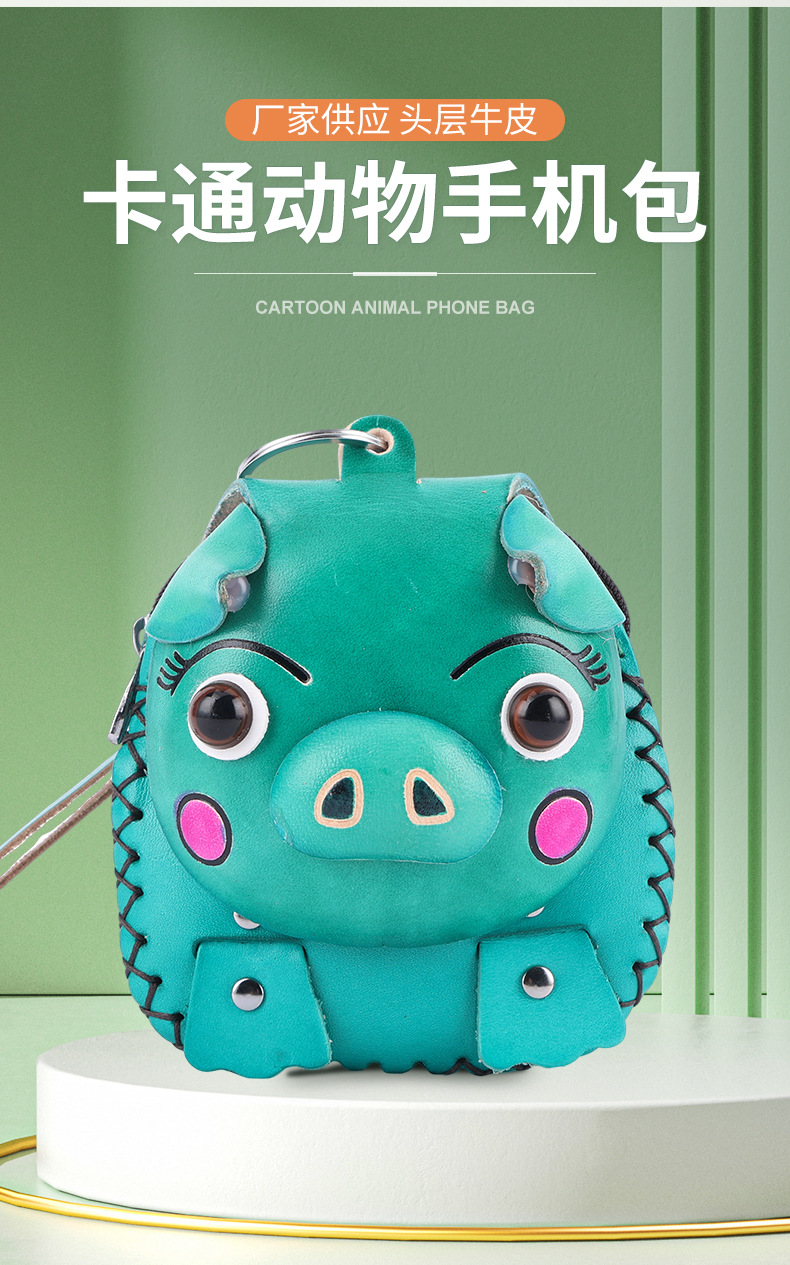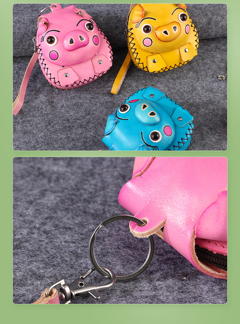 Cowhide 창조적 인 만화 돼지 가방 수제 어린이 동전 지갑 여행 기념 미니 귀여운 핸드백