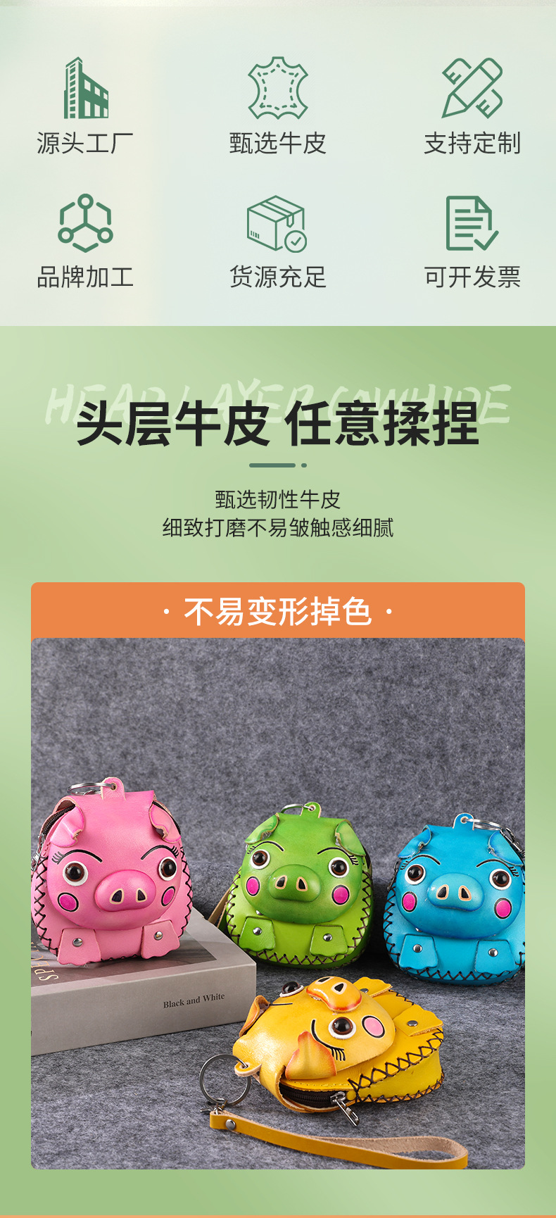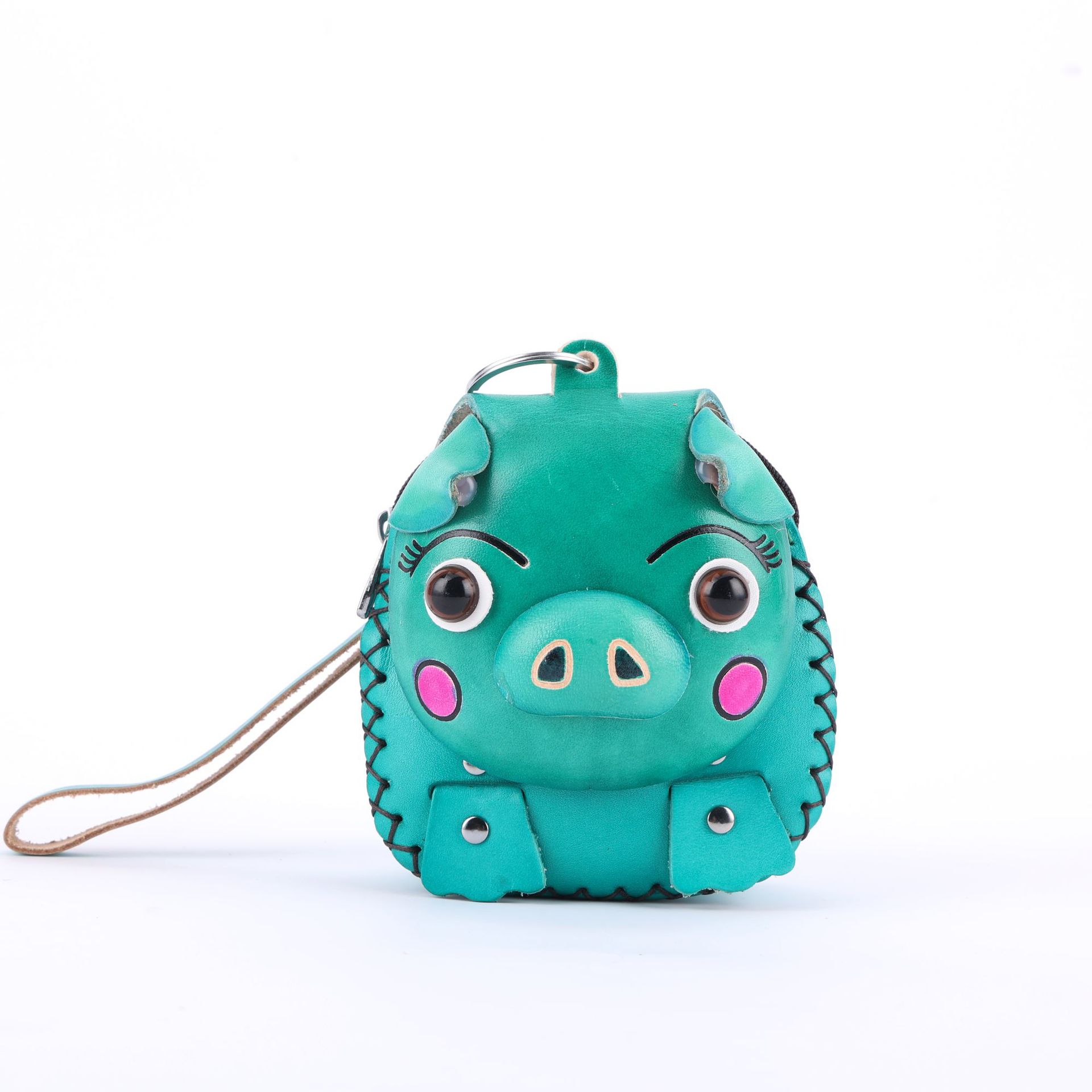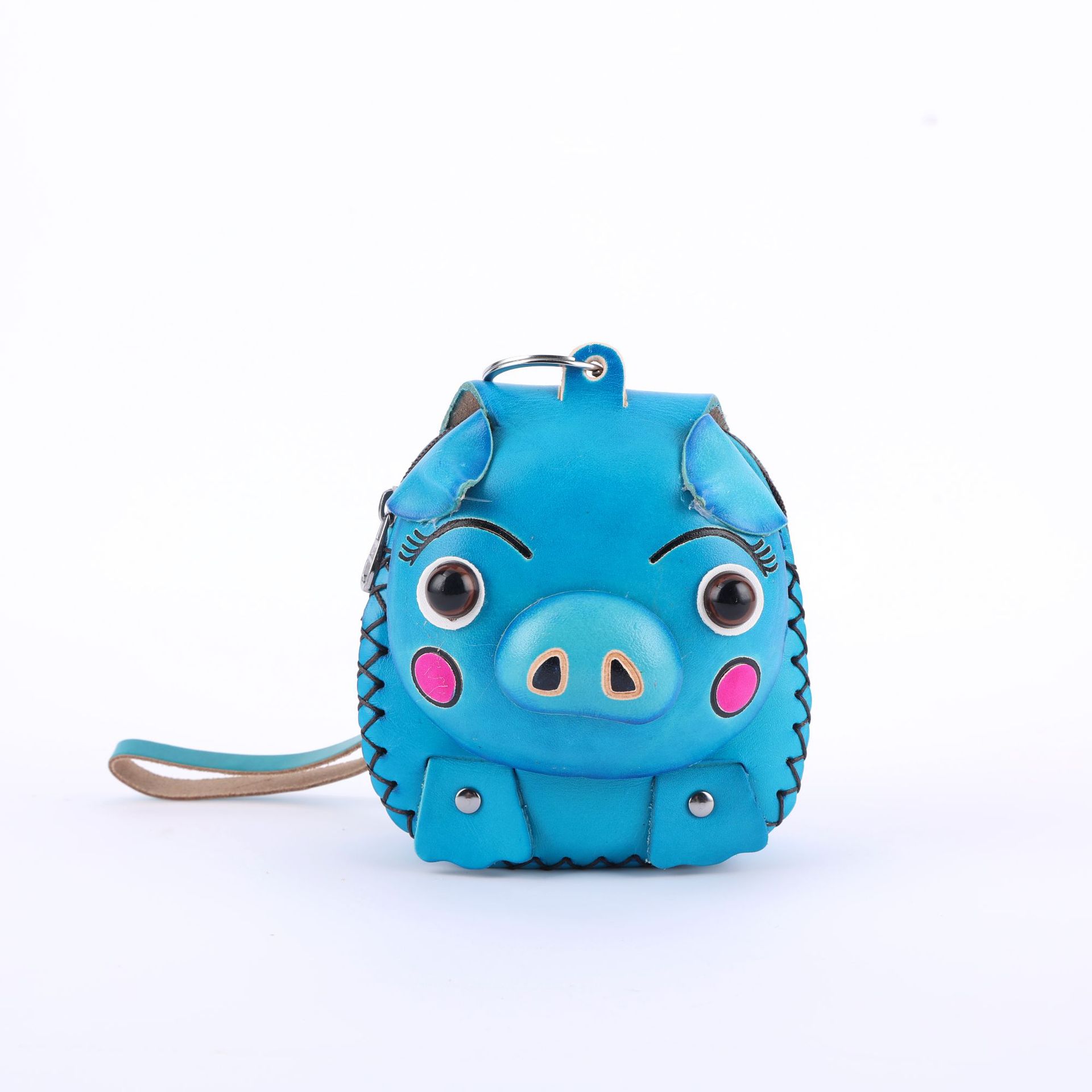 Cowhide 창조적 인 만화 돼지 가방 수제 어린이 동전 지갑 여행 기념 미니 귀여운 핸드백