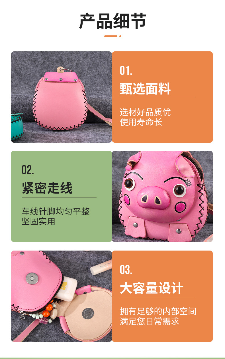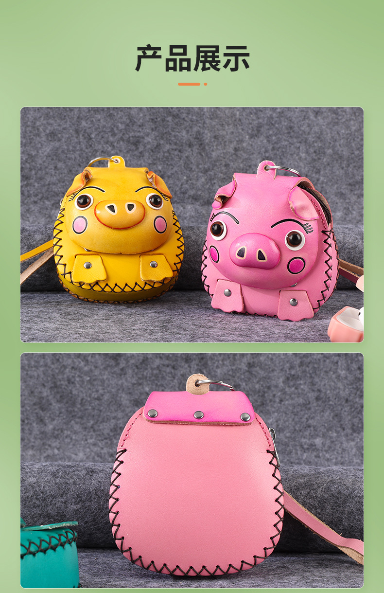 Cowhide 창조적 인 만화 돼지 가방 수제 어린이 동전 지갑 여행 기념 미니 귀여운 핸드백스토어 가기