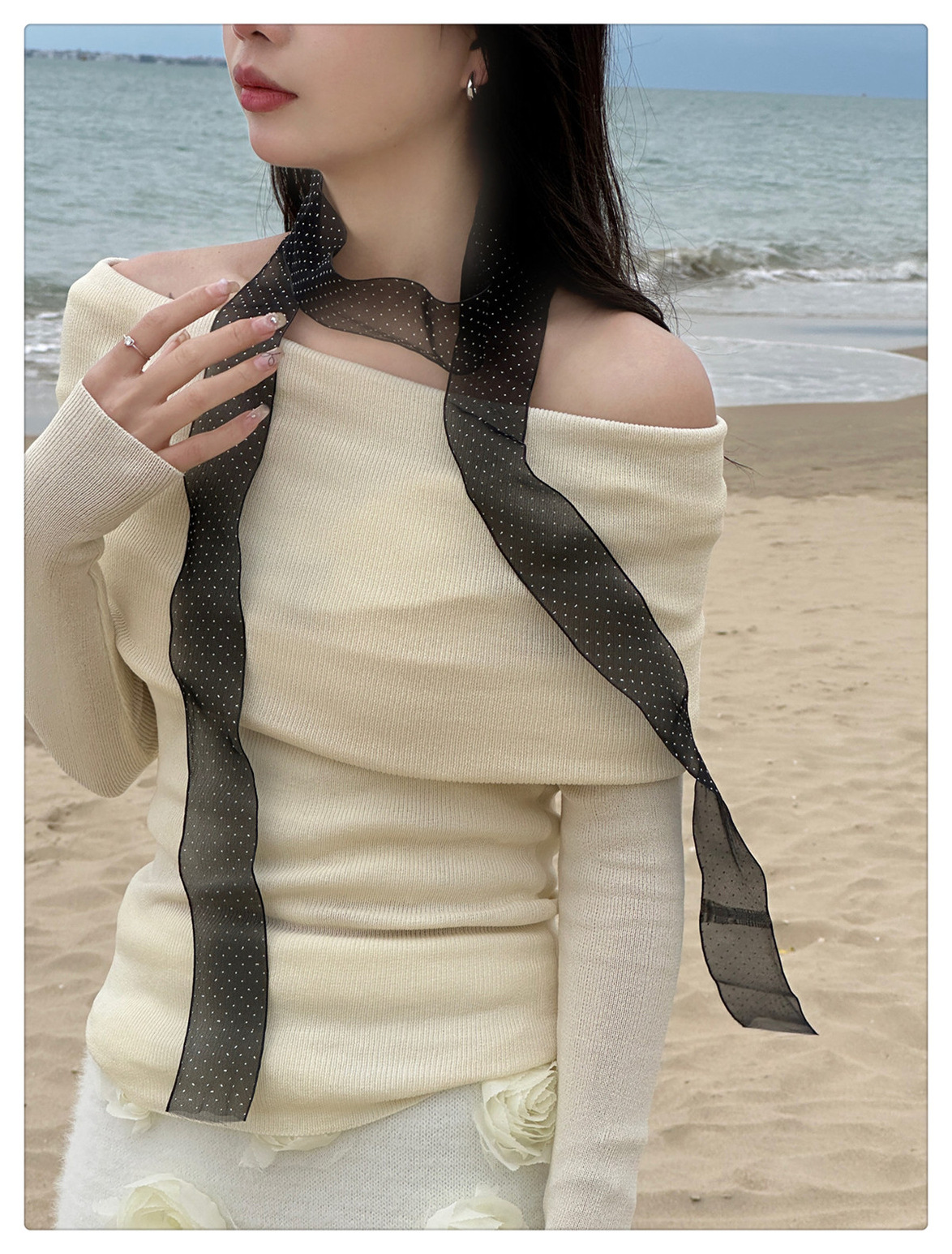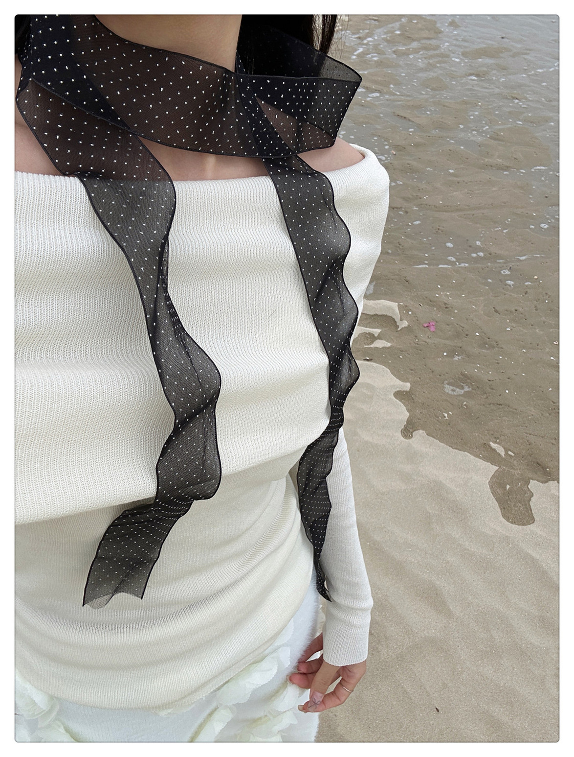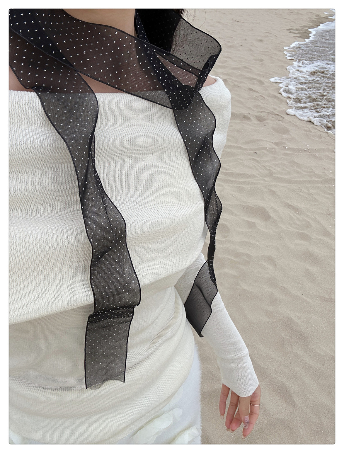 폴라 레이스 작은 스카프 여성 한국 봄과 여름 새로운 올 매치 패션 작은 리본 우아한 헤어 벨트 스카프 리본