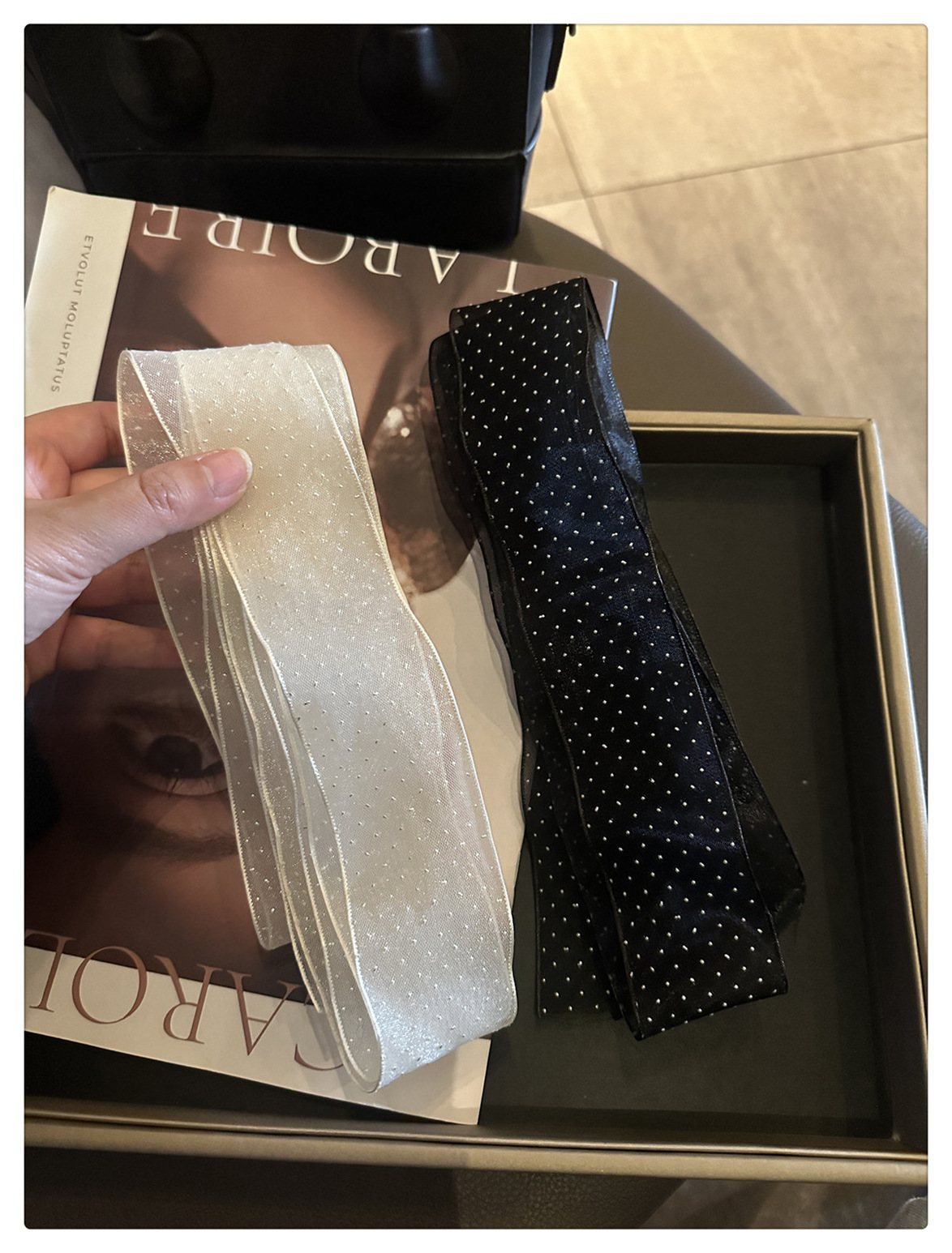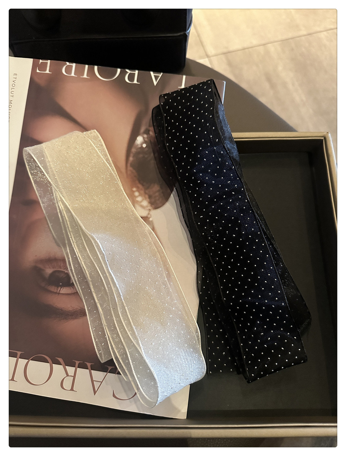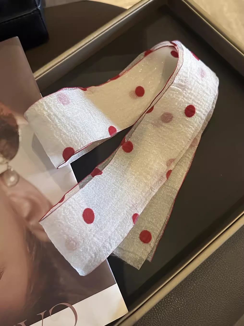 폴라 레이스 작은 스카프 여성 한국 봄과 여름 새로운 올 매치 패션 작은 리본 우아한 헤어 벨트 스카프 리본