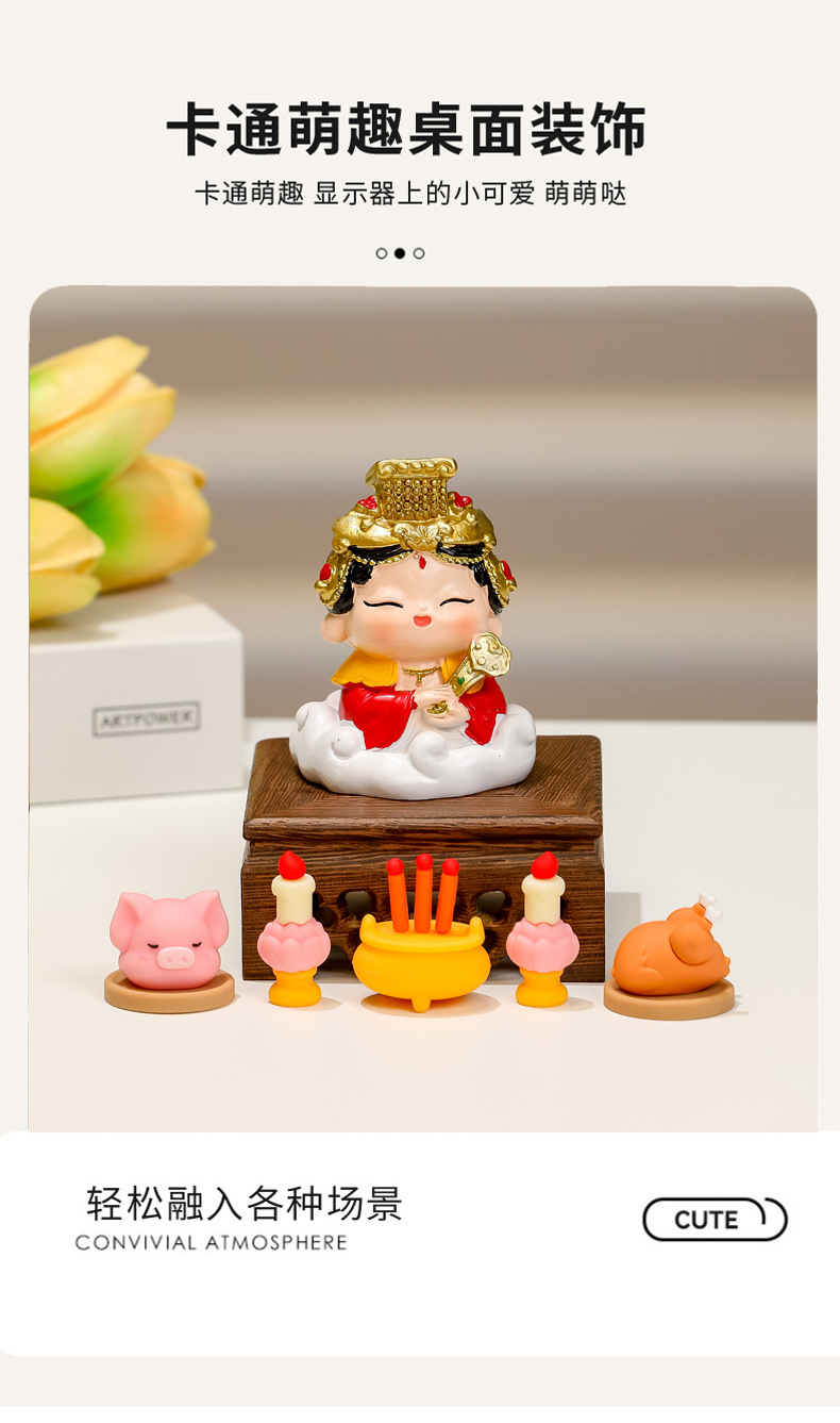 福喜财神家居客厅电视柜摆件树脂卡通小神仙办公室工位装饰品摆件