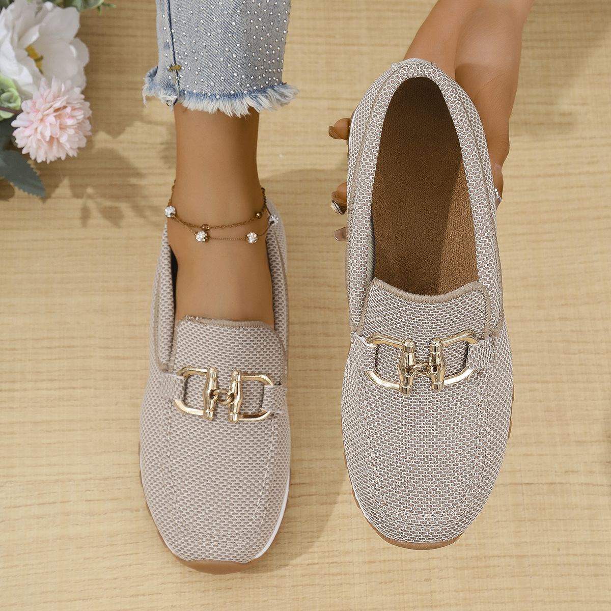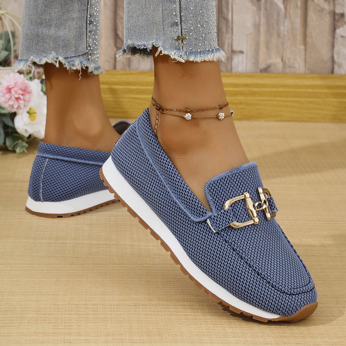 대외 무역 유럽 및 미국 스타일 여성용 빅사이즈 로퍼 2026 봄 신상 라운드 토 메탈 버클 슬립온 여성화 아마존