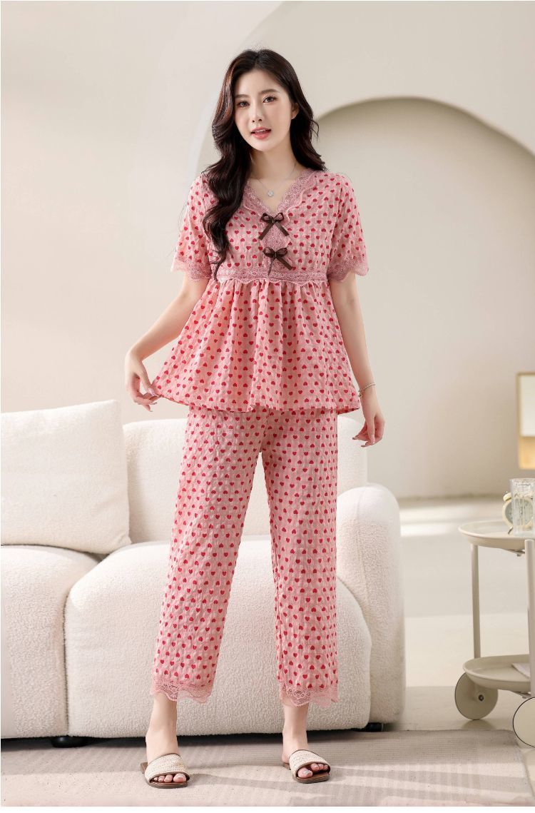 뜨거운 잠옷 여성의 봄과 여름 새로운 레이스 달콤한 소녀 한국 느슨한 슬리밍 홈 세트 옷