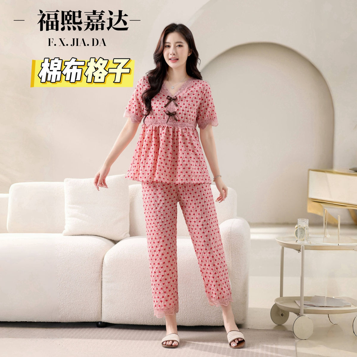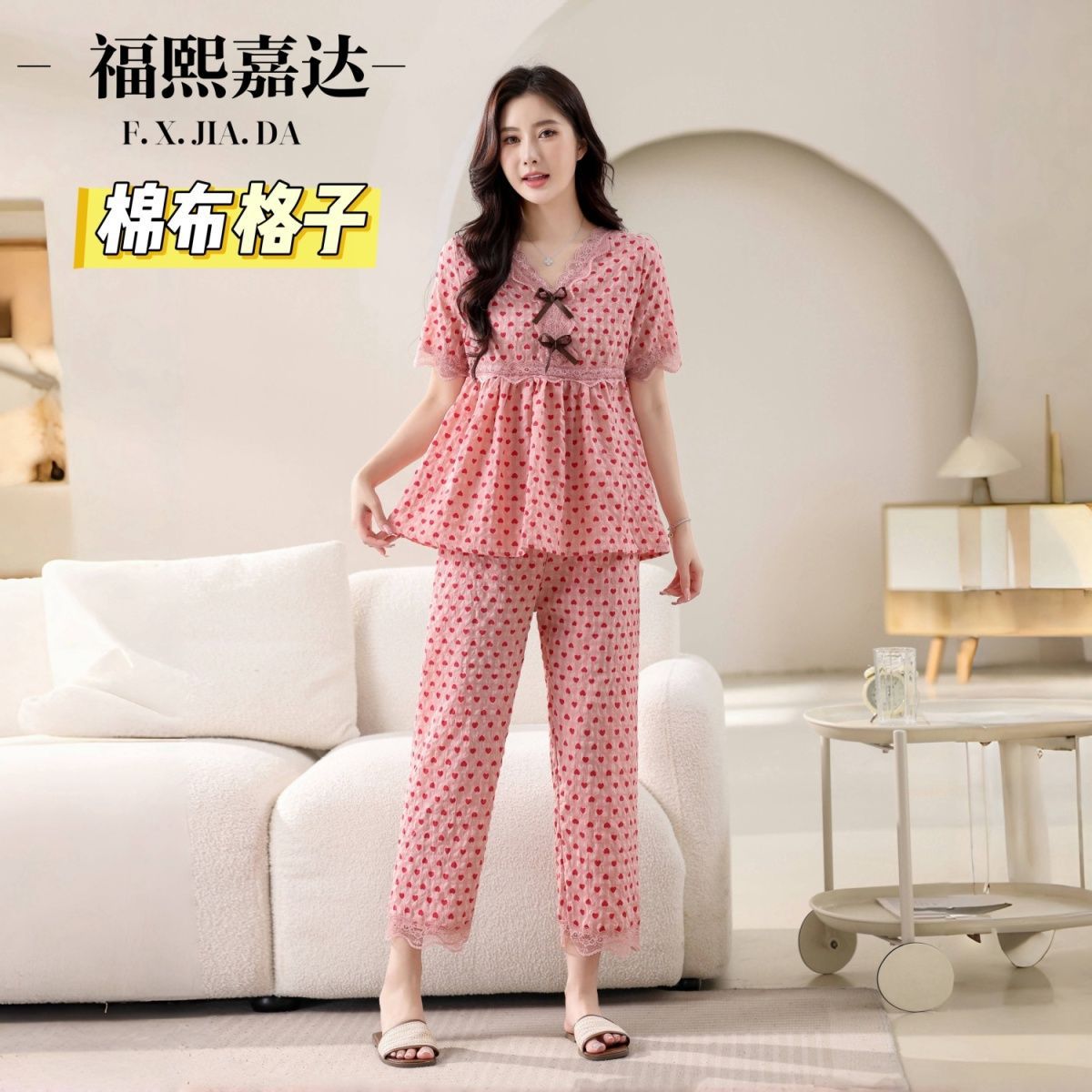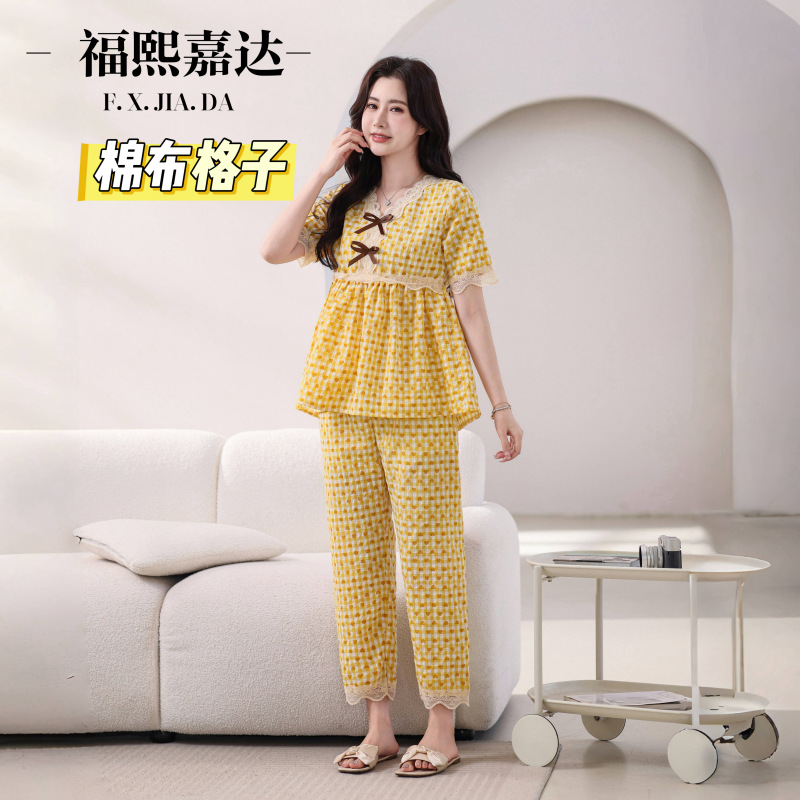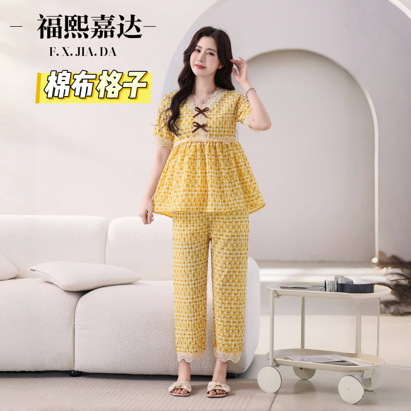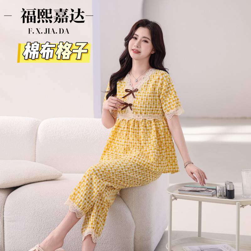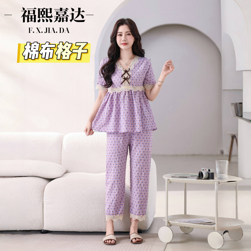 뜨거운 잠옷 여성의 봄과 여름 새로운 레이스 달콤한 소녀 한국 느슨한 슬리밍 홈 세트 옷스토어 가기