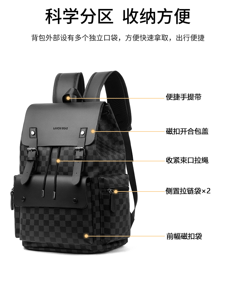 배낭 남성 체크 무늬 통근 캐주얼 사무실 노동자 백팩 대용량 비즈니스 여행 비즈니스 작업 컴퓨터 가방스토어 가기