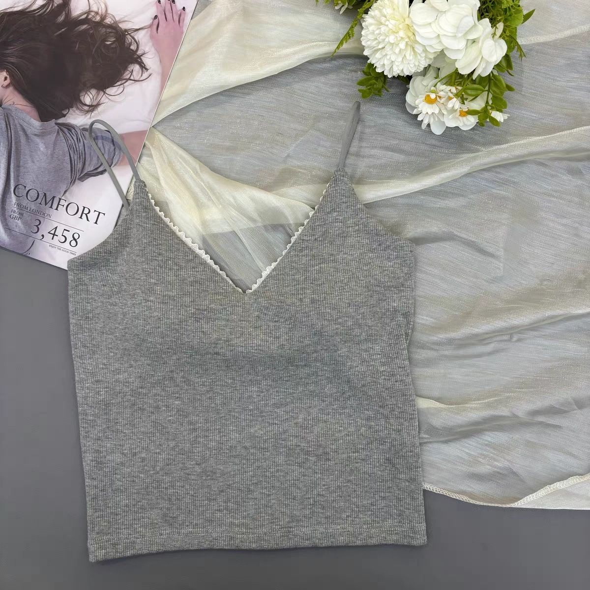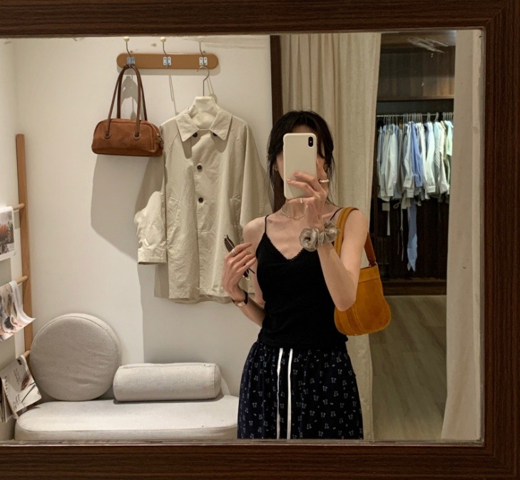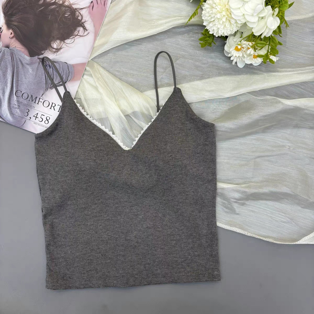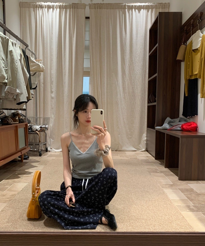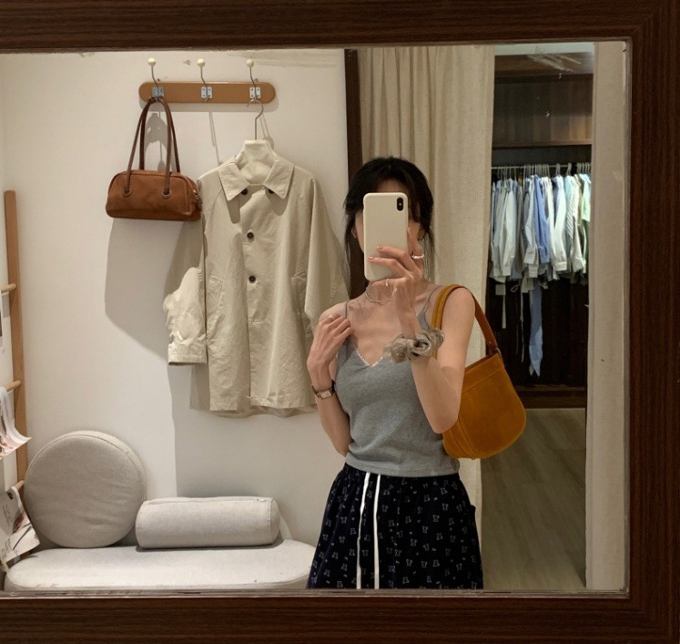 레이스 패션 얇은 어깨 스트랩 전면 및 후면 대형 V 디자인 작은 슬링 아름다운 등 가슴 패드 내부 착용 외부 착용 조끼 탑