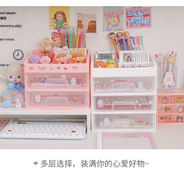 플라스틱 저장 상자 학생 손 계정 Sundry 드레싱 테이블 기숙사 필기 책상 보관 랙 데스크톱 보관 상자스토어 가기
