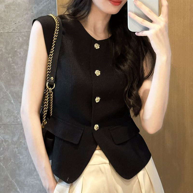 여성용 샤넬 스타일 블랙 조끼 2026 여름 신상 한국 스타일 얇은 민소매 조끼