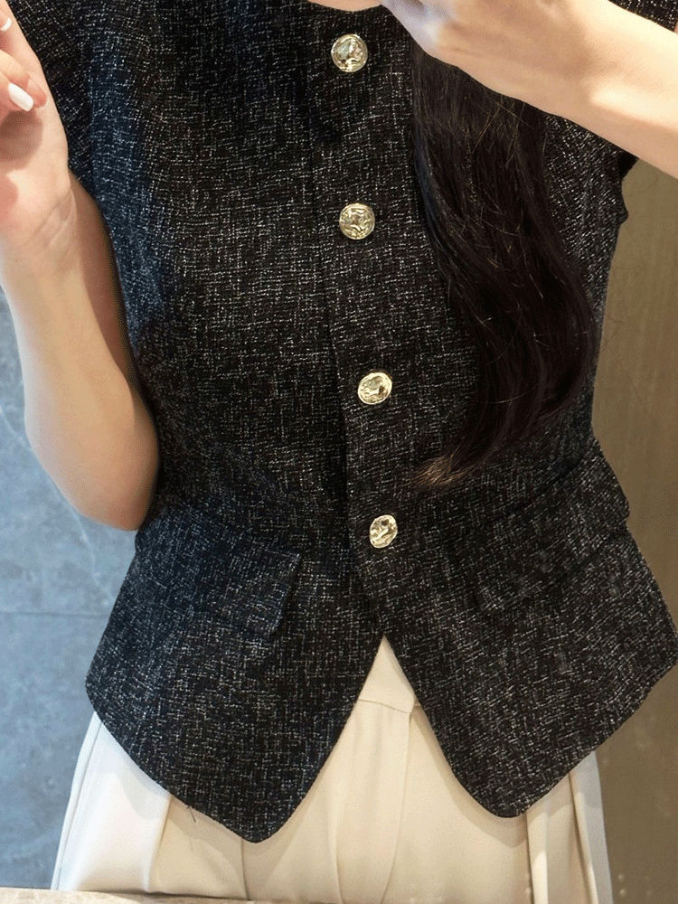 여성용 샤넬 스타일 블랙 조끼 2026 여름 신상 한국 스타일 얇은 민소매 조끼스토어 가기