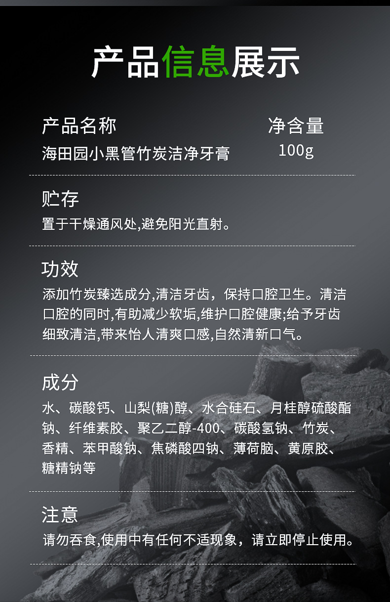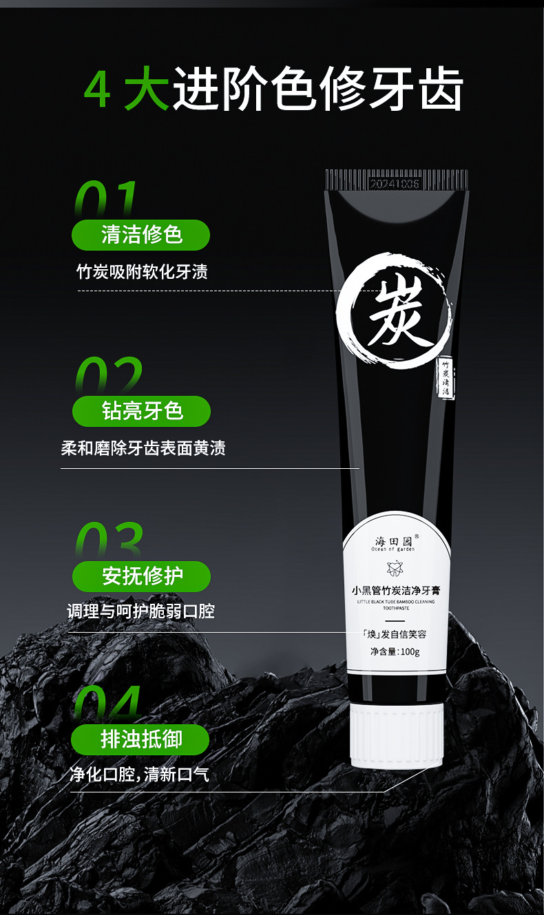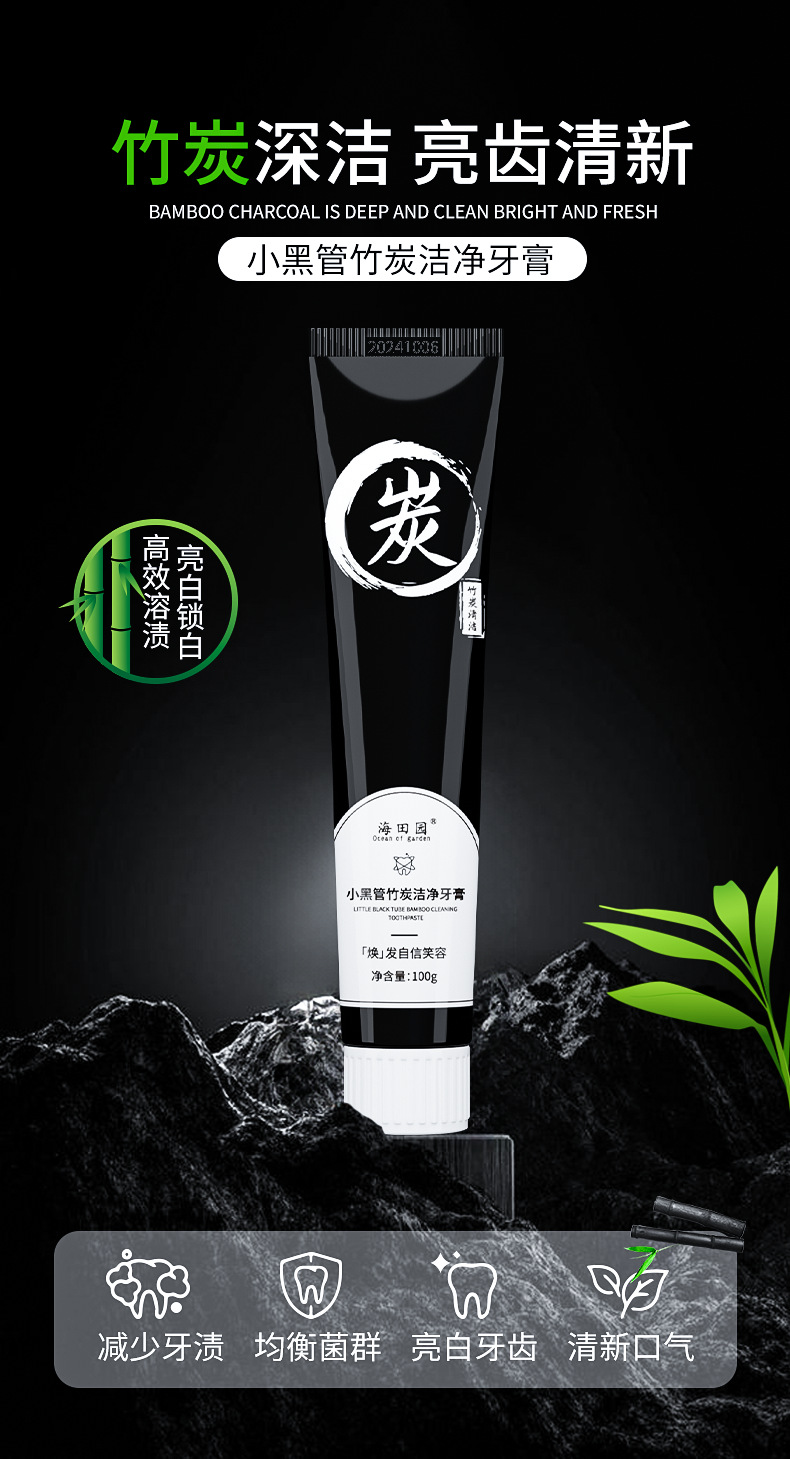 Hai Tian Yuan 작은 검은 색 튜브 대나무 숯 깨끗한 치약 밝은 치아 신선한 거부 치아 노란색 치아 얼룩 흰색 대나무 탄소 깊은 청소