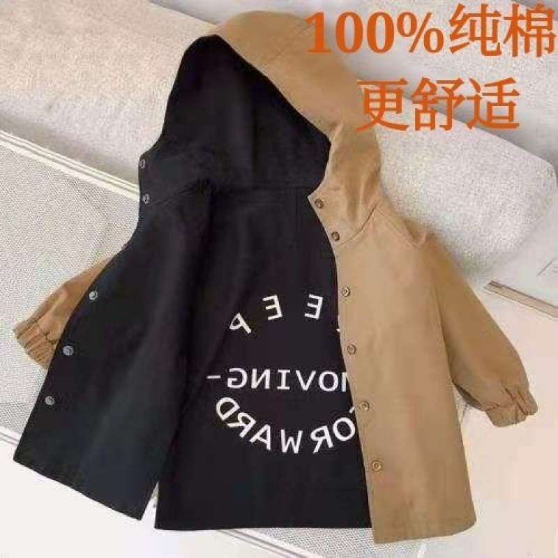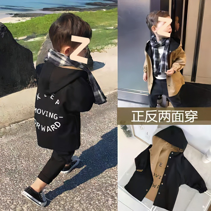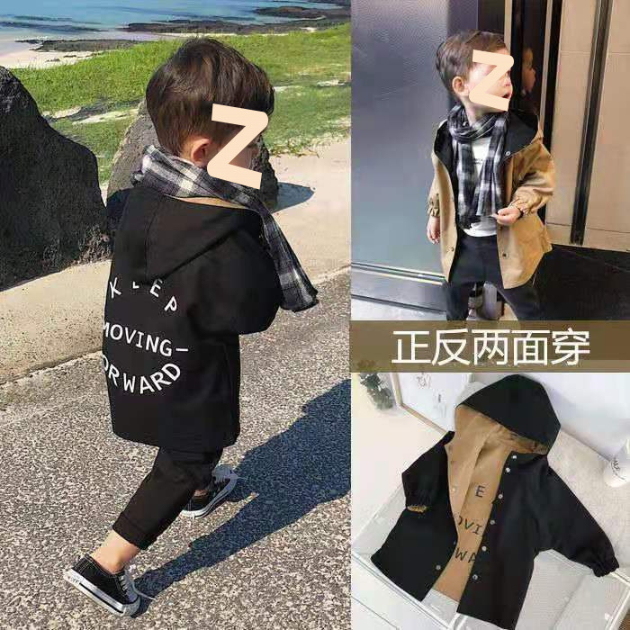 아동복 봄과 가을 2025 새로운 앞뒤 착용 어린이 긴 윈드 브레이커 남성 아기 후드 코트 재고스토어 가기
