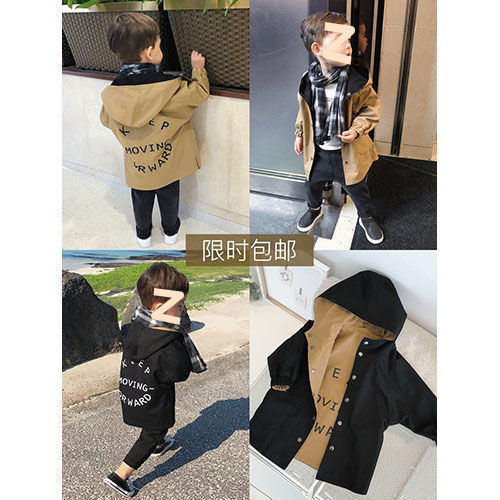 아동복 봄과 가을 2025 새로운 앞뒤 착용 어린이 긴 윈드 브레이커 남성 아기 후드 코트 재고