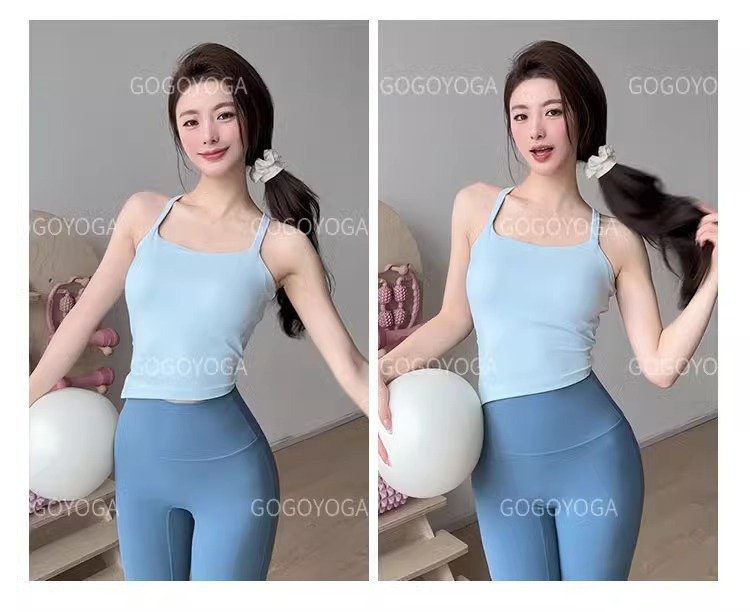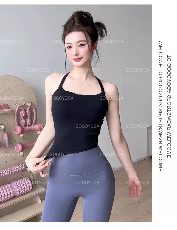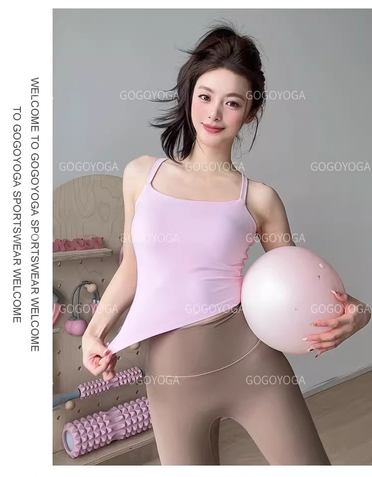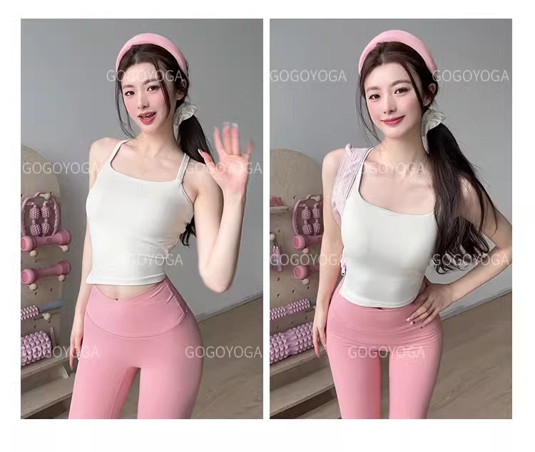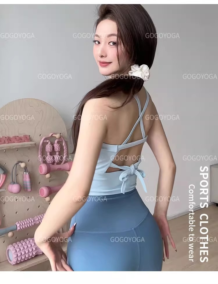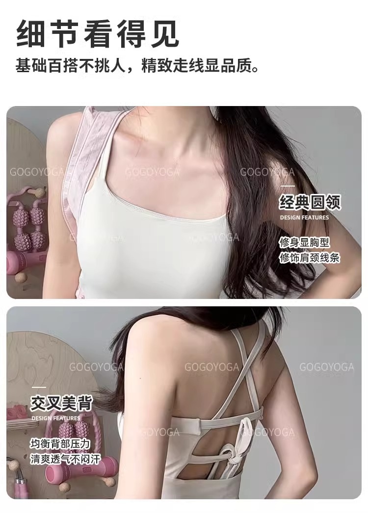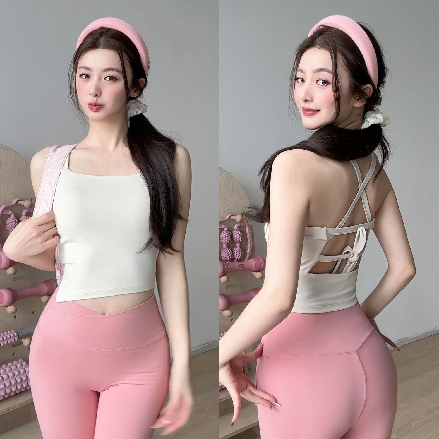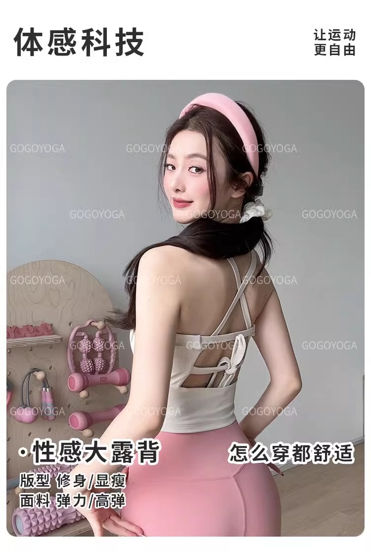 봄과 여름 요가 의류 조끼 2025 새로운 크로스 아름다운 뒷면 목 긴 슬링 고정 컵 스포츠 브라스토어 가기