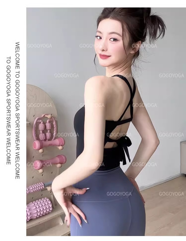 봄과 여름 요가 의류 조끼 2025 새로운 크로스 아름다운 뒷면 목 긴 슬링 고정 컵 스포츠 브라