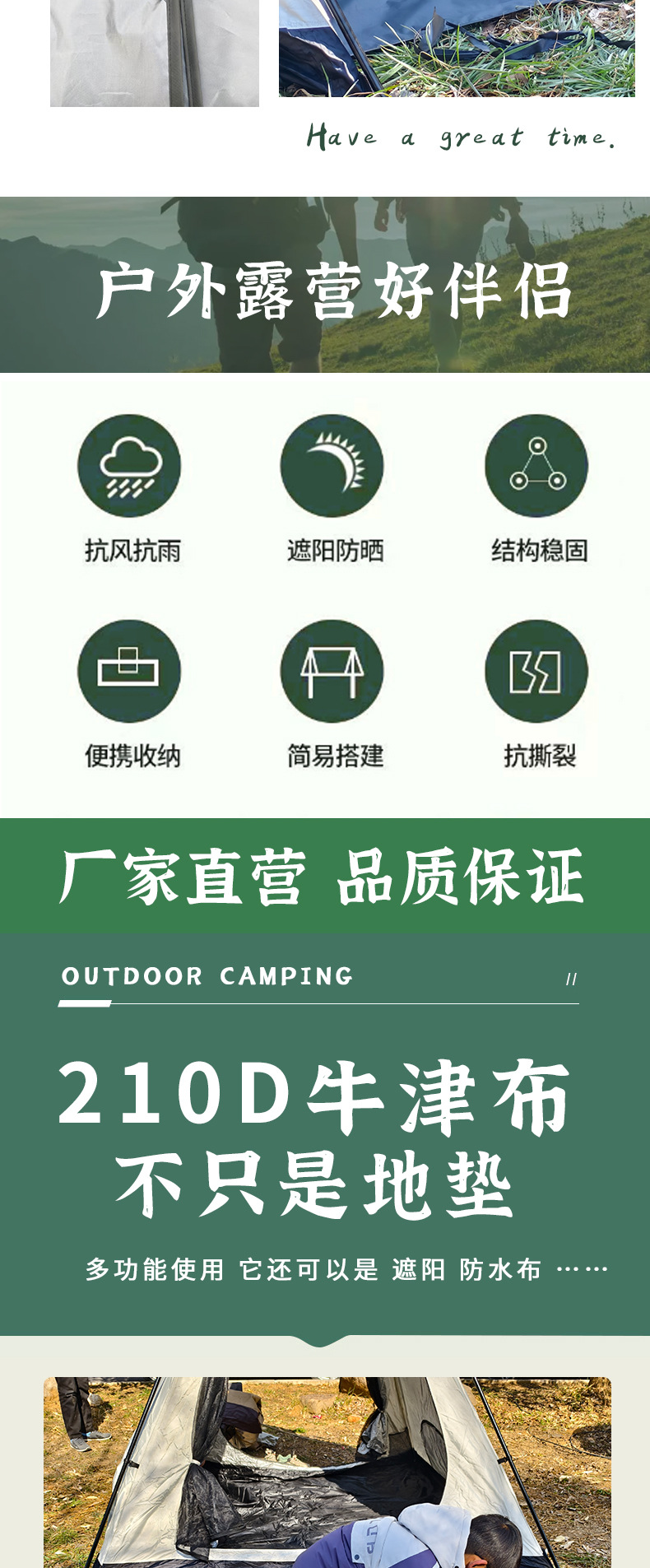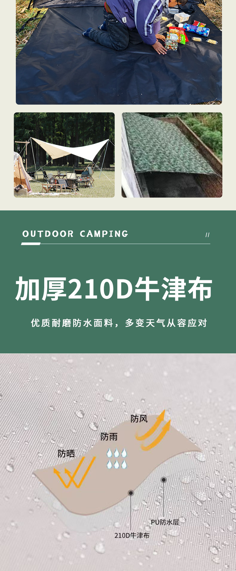 옥스포드 천 방수 텐트, 방습 바닥 천 피크닉 매트, 휴대용 보호 텐트 바닥 210d, 보관 가능스토어 가기