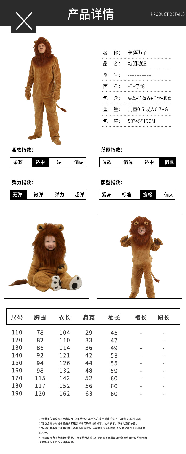 할로윈 의상 만화 사자 의상 COS 동물 파티 공연 댄스 파티 성인 어린이 부모-자식 의상