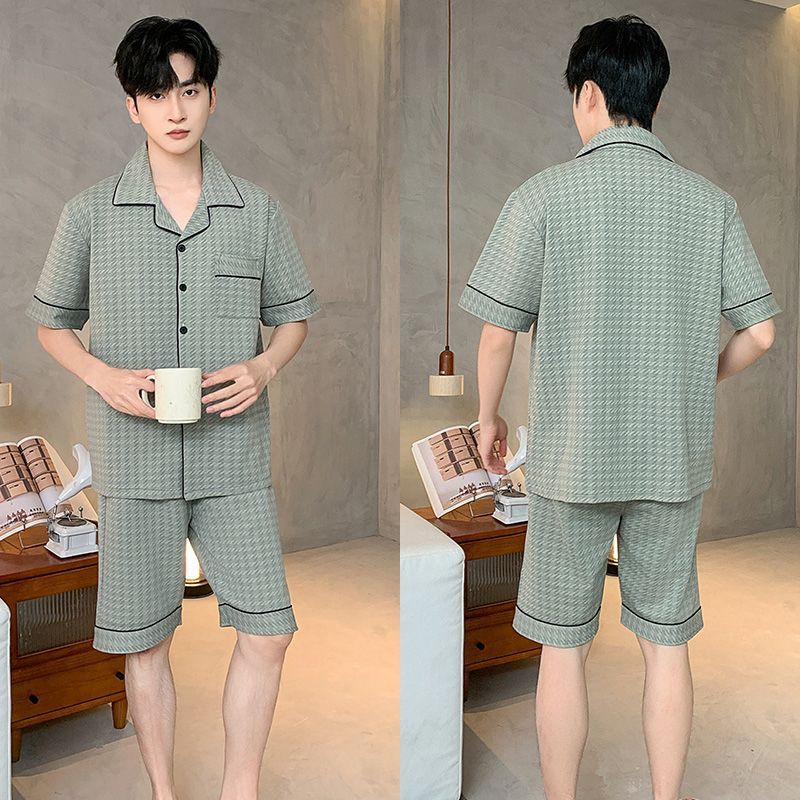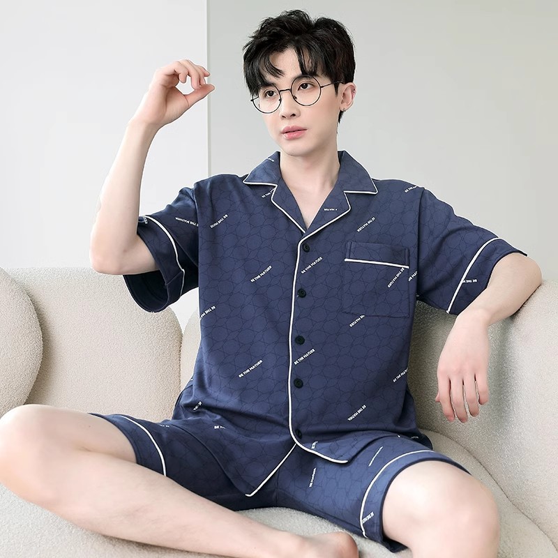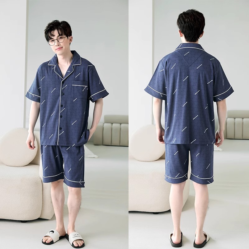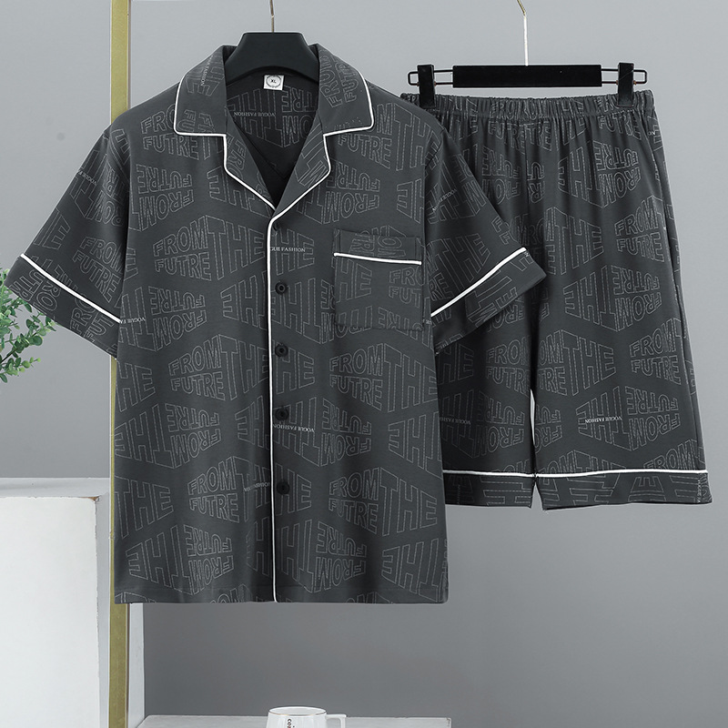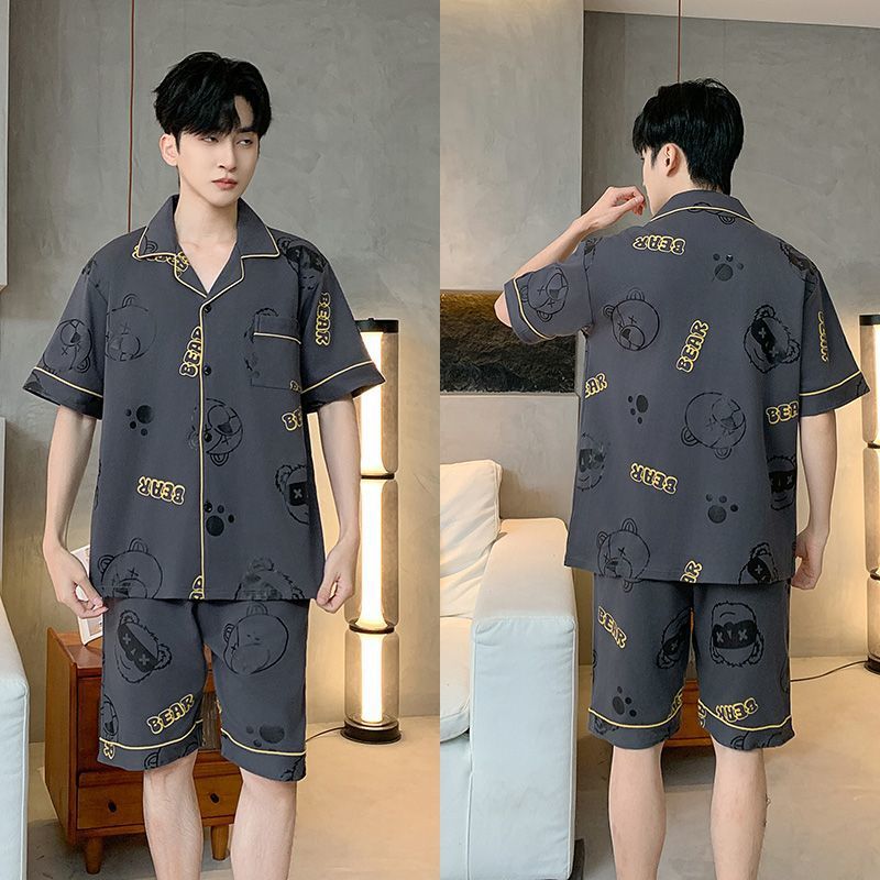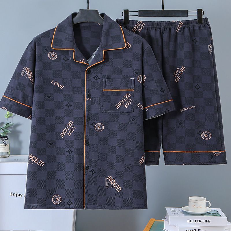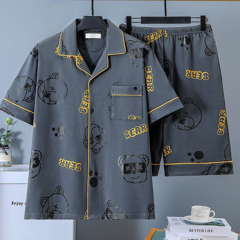 잠옷 플러스 사이즈 남성 여름 반팔 얇은 청소년 목욕 세트 캐주얼 간단한 모조 면 스웨트 셔츠 홈 의류 3스토어 가기