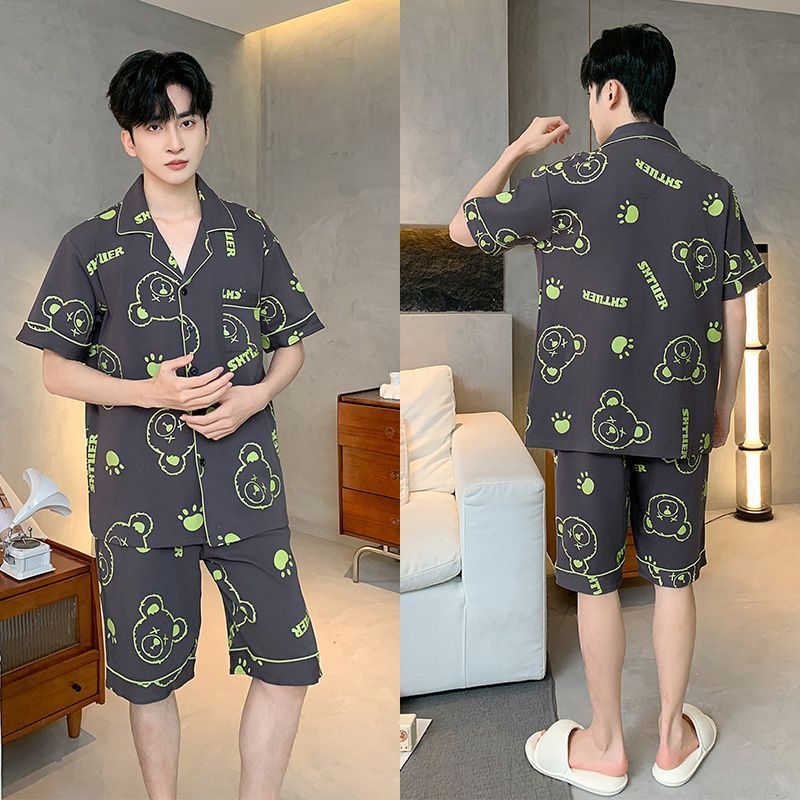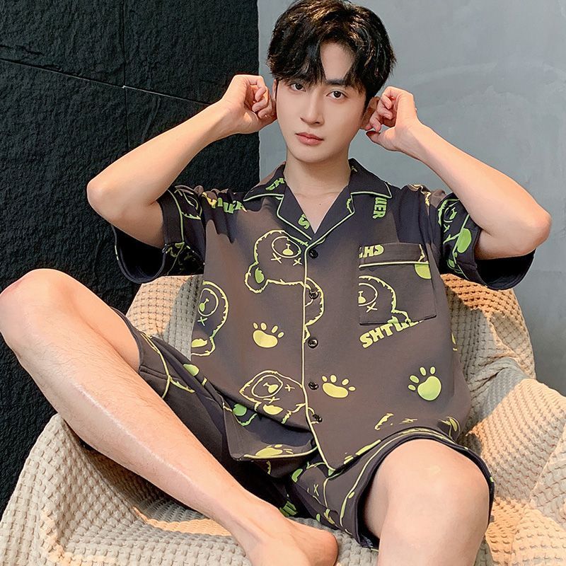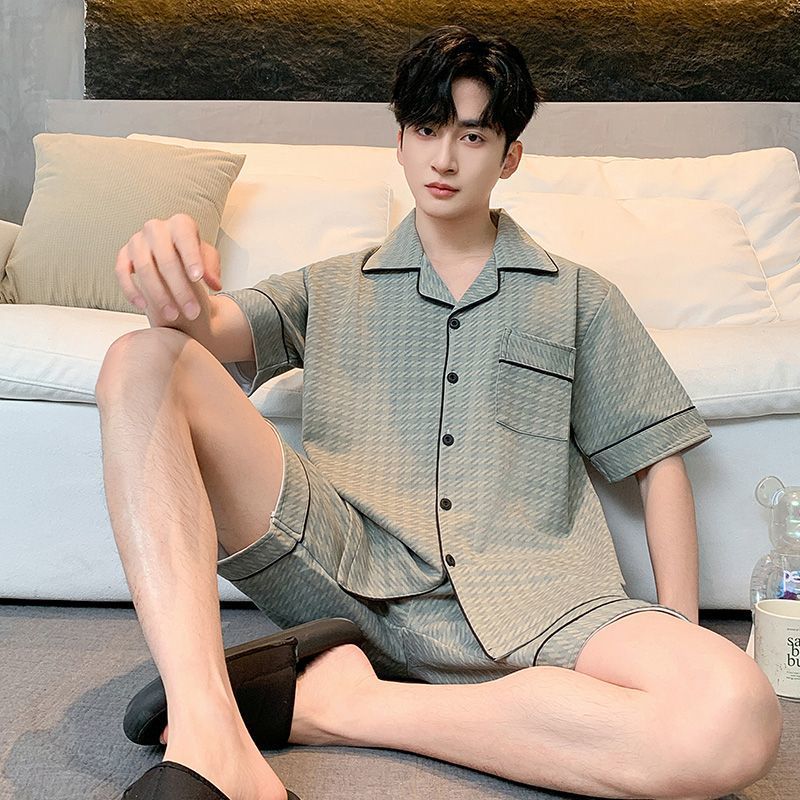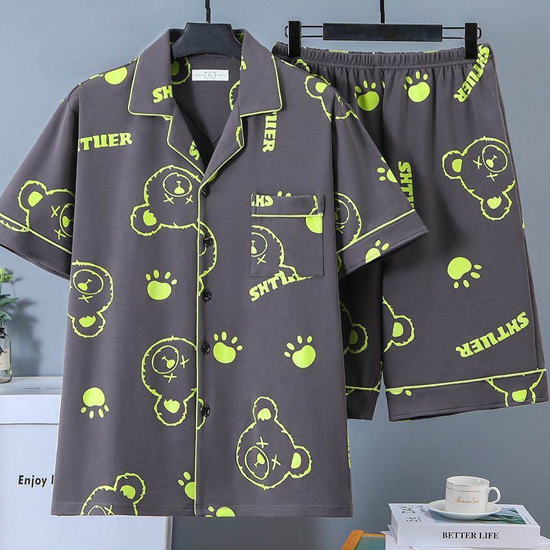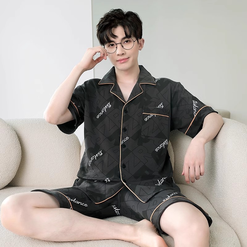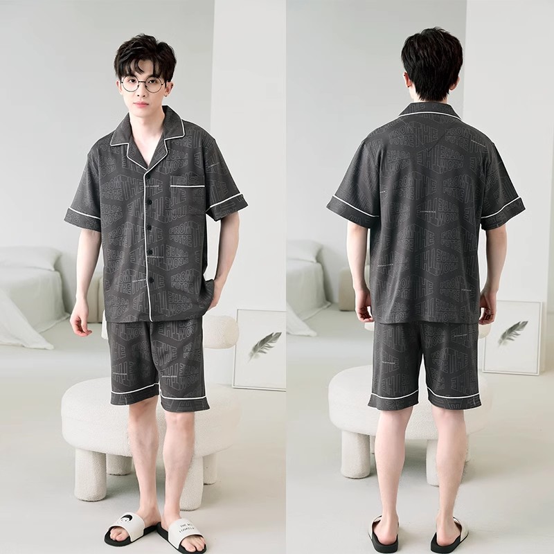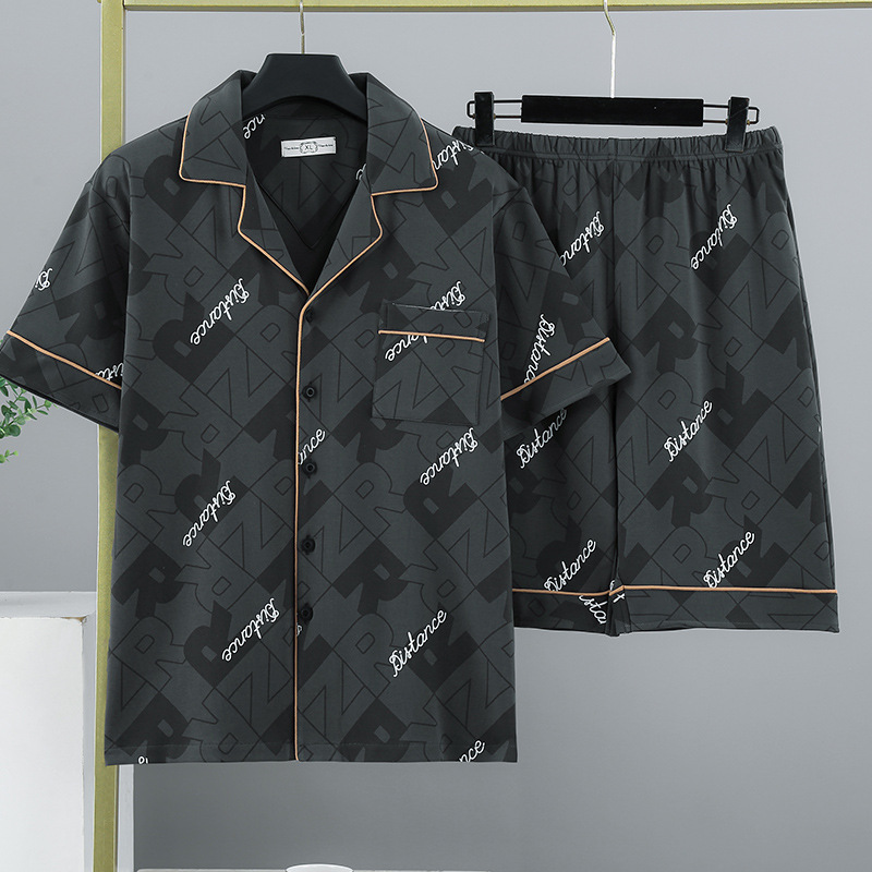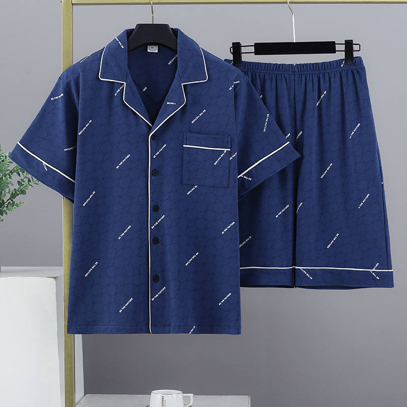 잠옷 플러스 사이즈 남성 여름 반팔 얇은 청소년 목욕 세트 캐주얼 간단한 모조 면 스웨트 셔츠 홈 의류 3스토어 가기