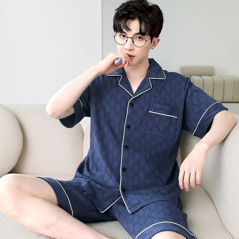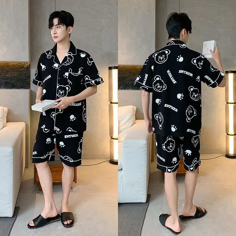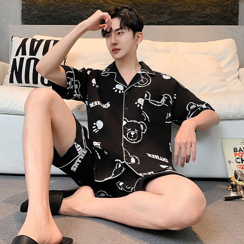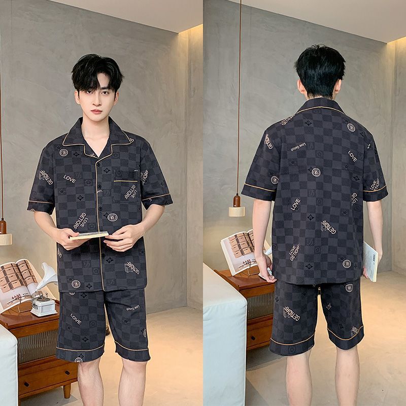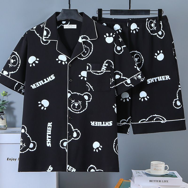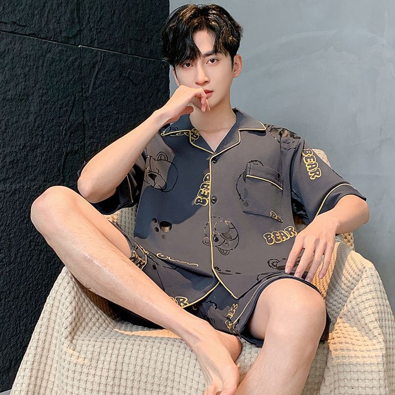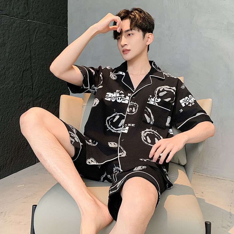 잠옷 플러스 사이즈 남성 여름 반팔 얇은 청소년 목욕 세트 캐주얼 간단한 모조 면 스웨트 셔츠 홈 의류 3스토어 가기