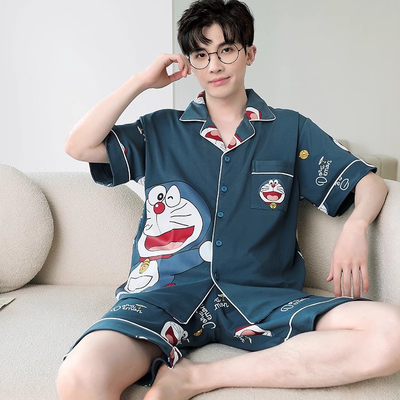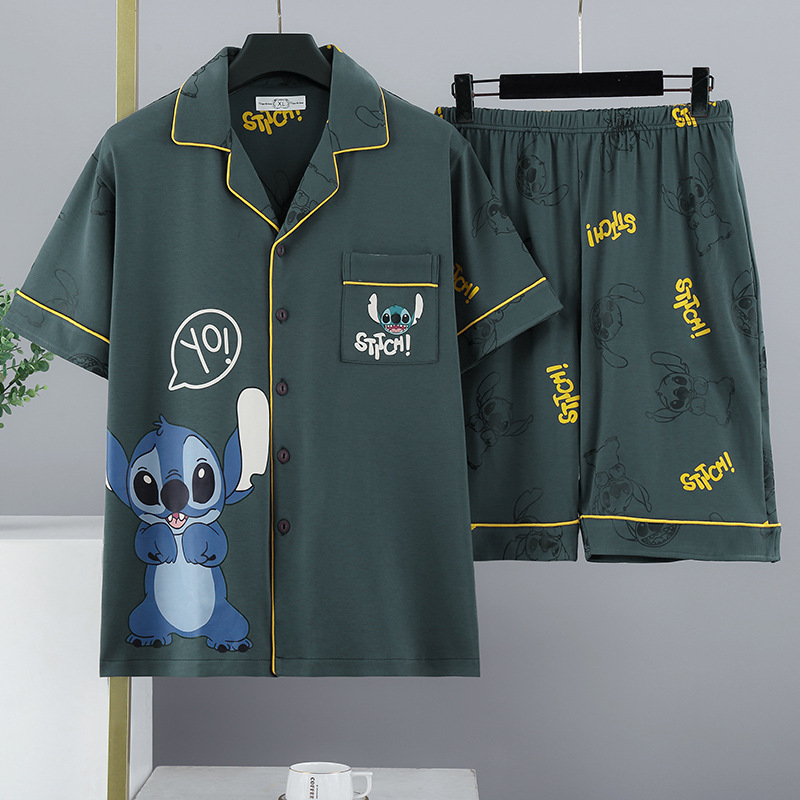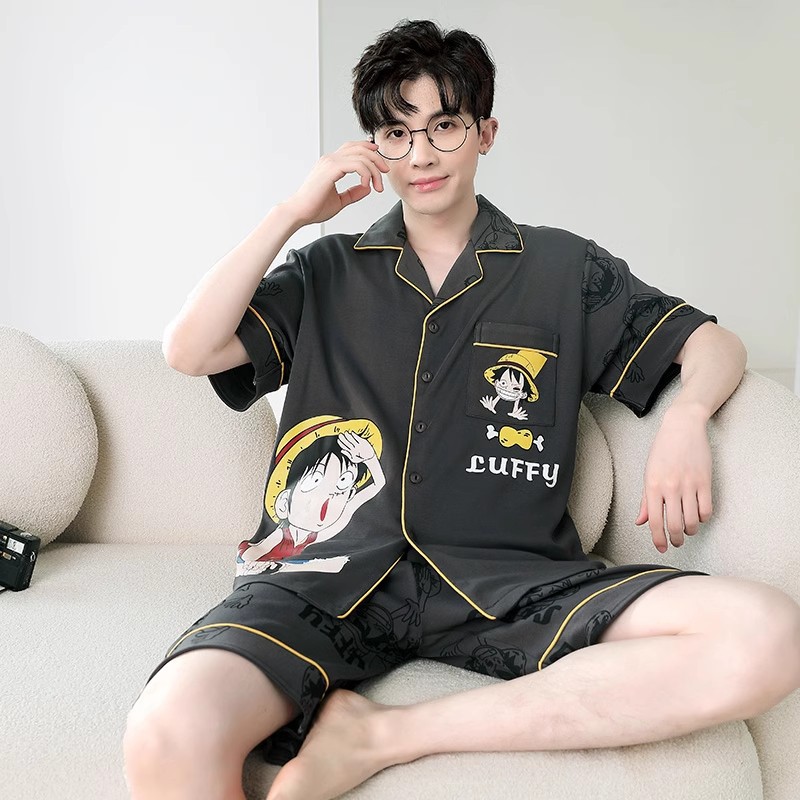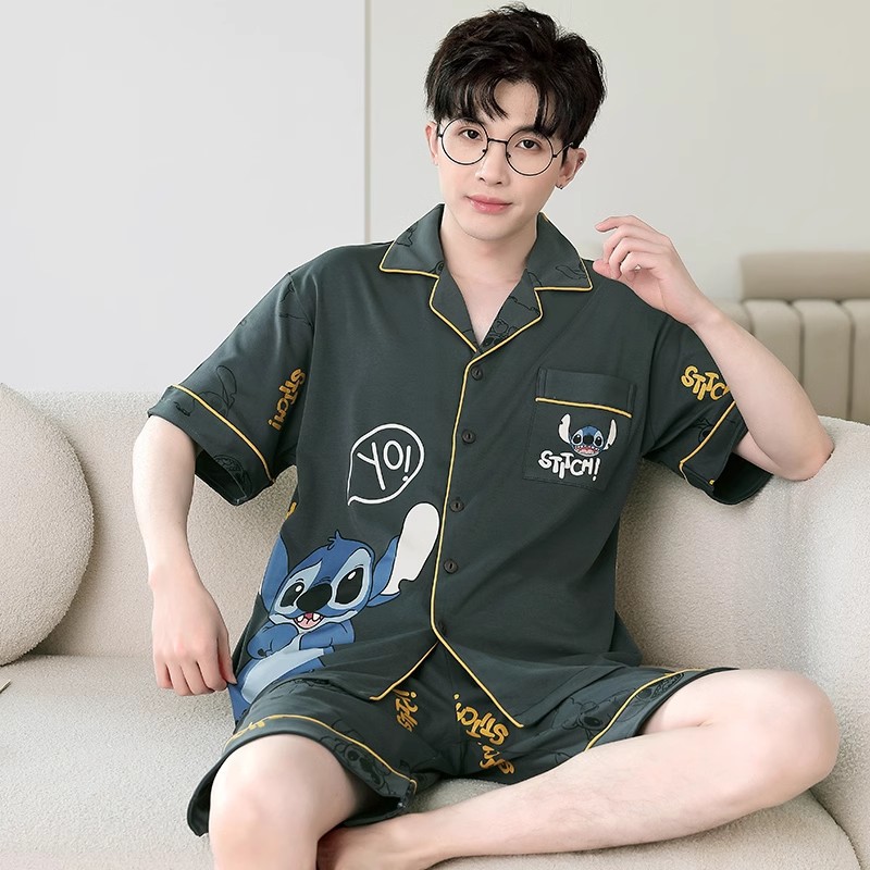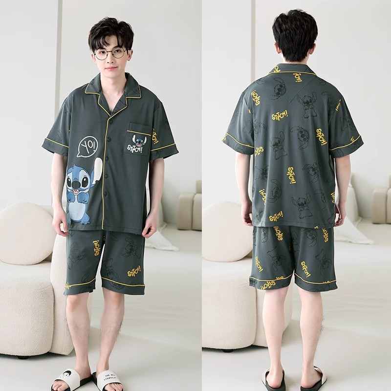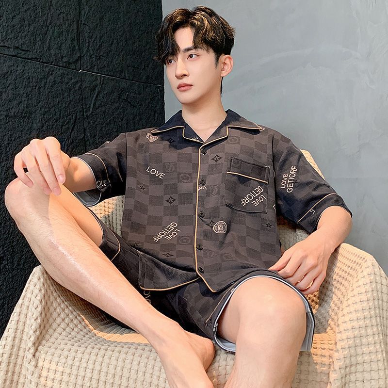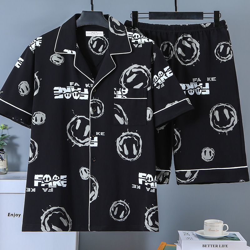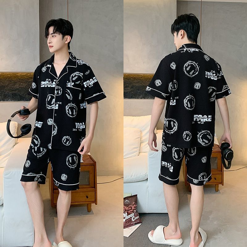 잠옷 플러스 사이즈 남성 여름 반팔 얇은 청소년 목욕 세트 캐주얼 간단한 모조 면 스웨트 셔츠 홈 의류 3스토어 가기