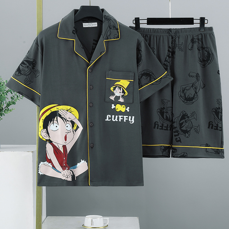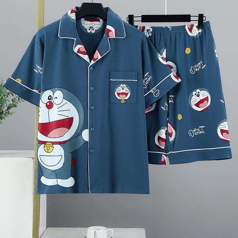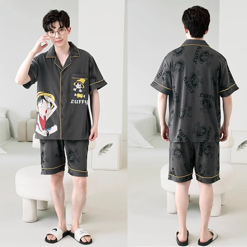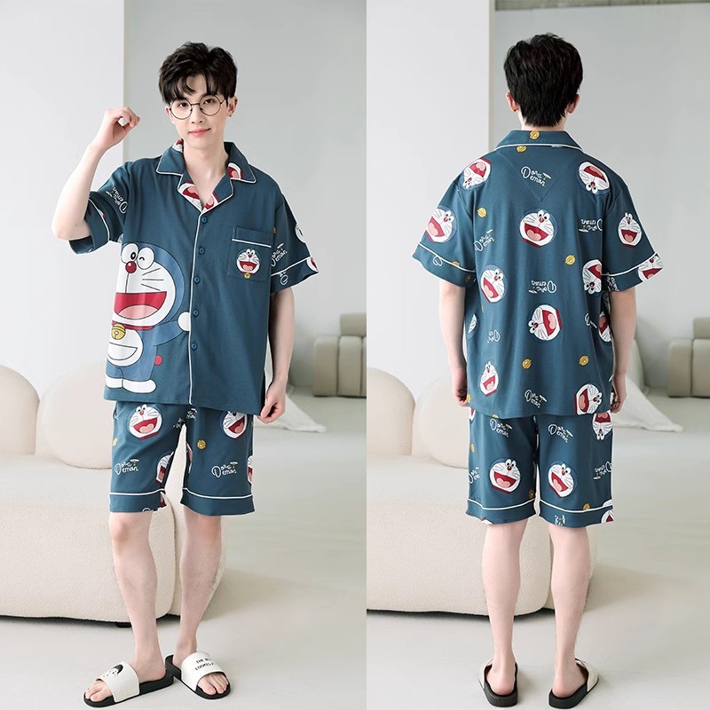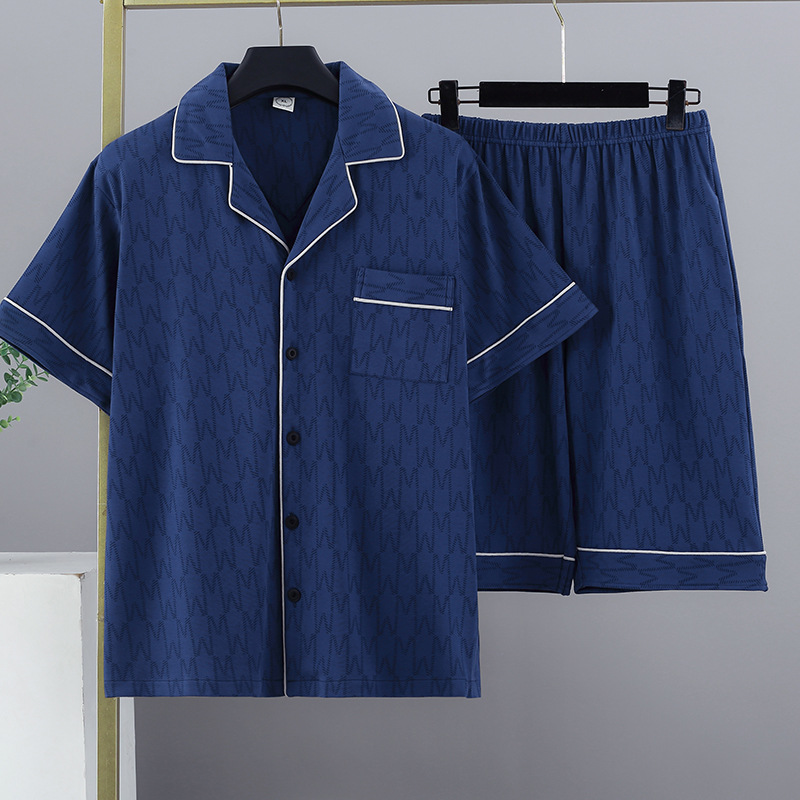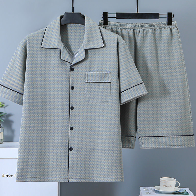 睡衣男夏季棉短袖薄款青少年浴服休闲简约汗蒸服大码家居服套装