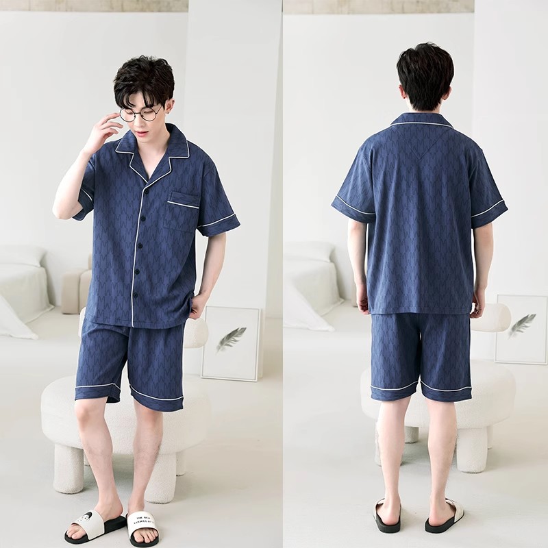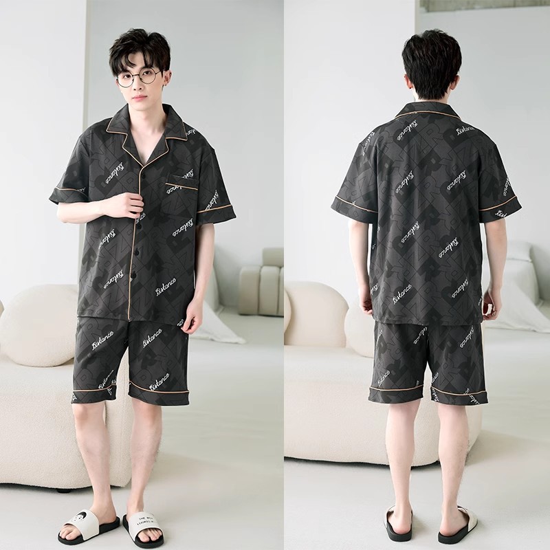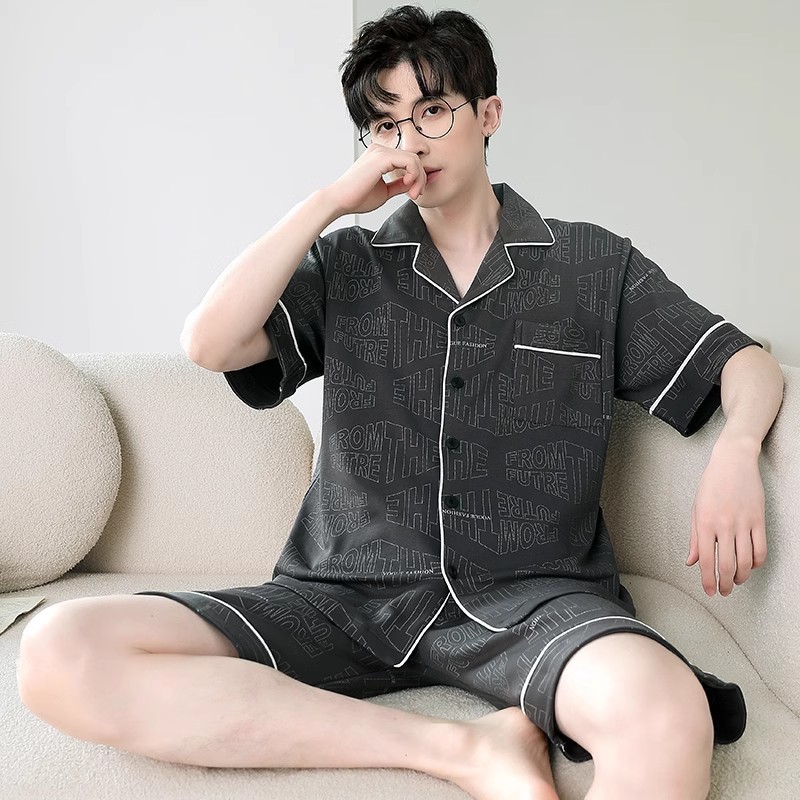 잠옷 플러스 사이즈 남성 여름 반팔 얇은 청소년 목욕 세트 캐주얼 간단한 모조 면 스웨트 셔츠 홈 의류 3