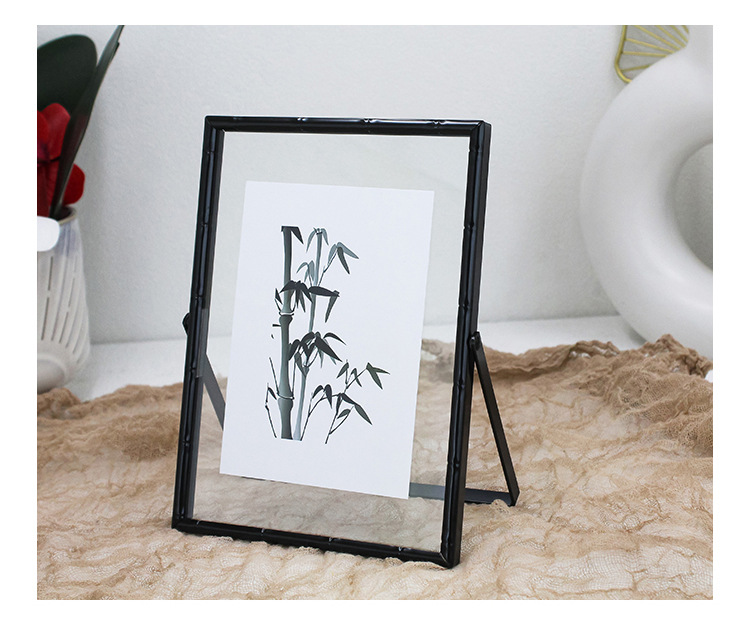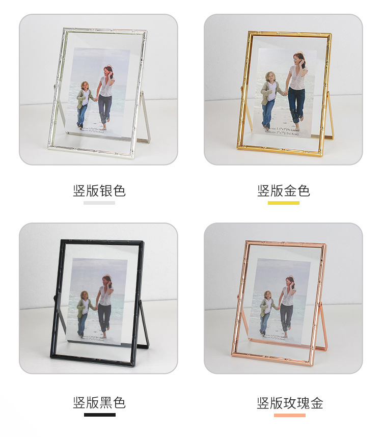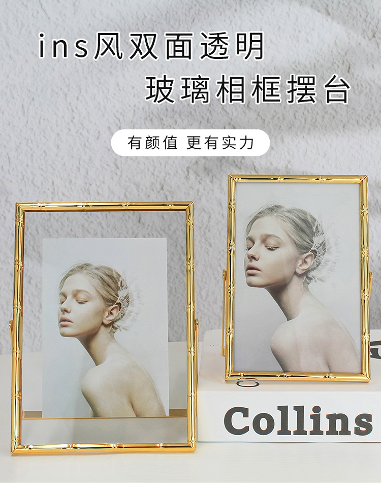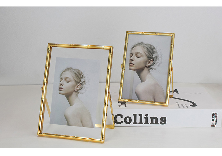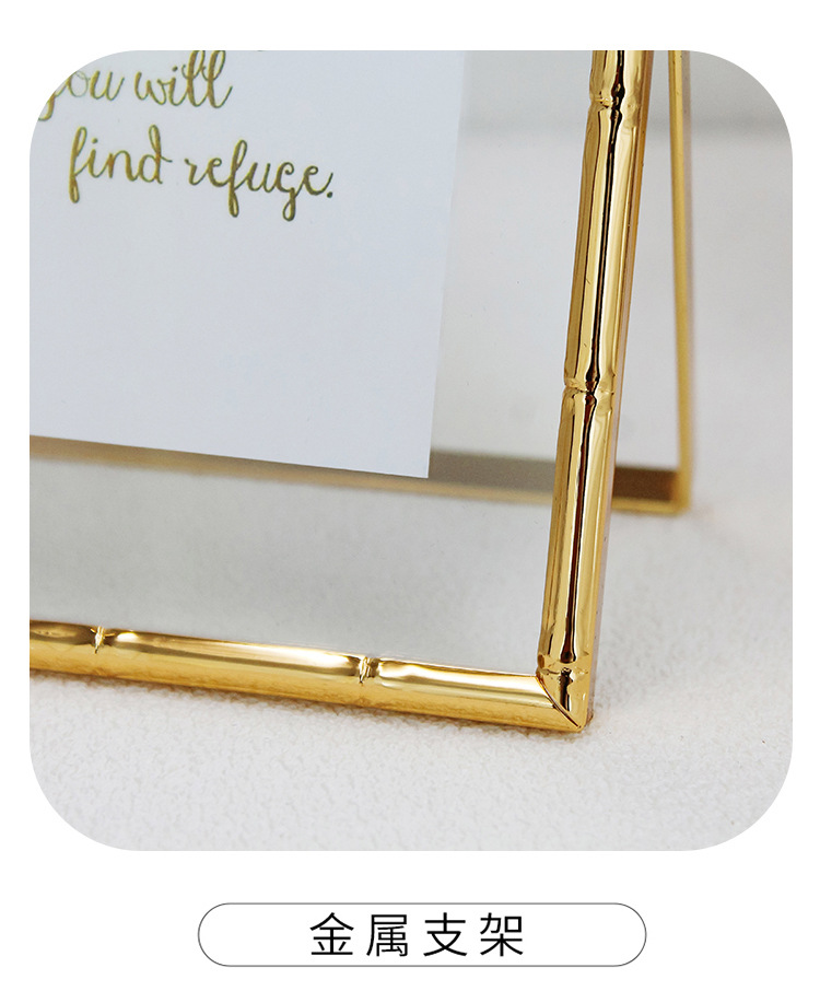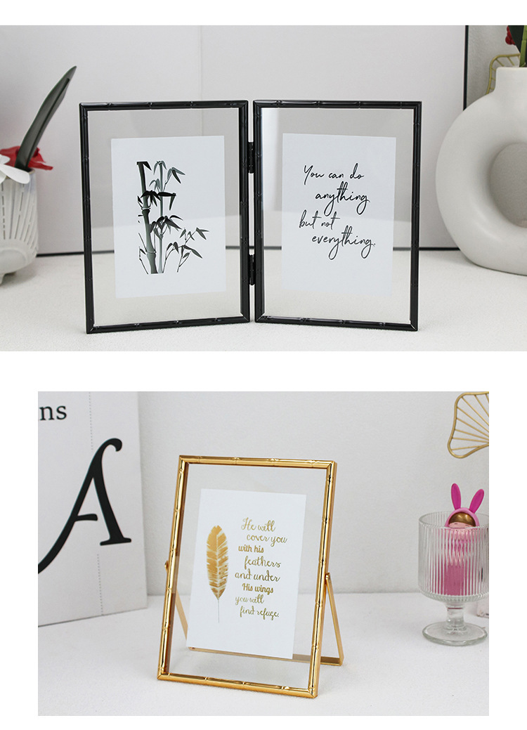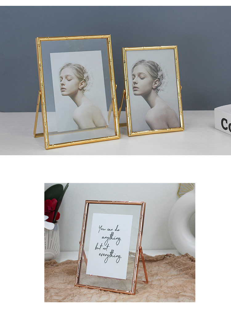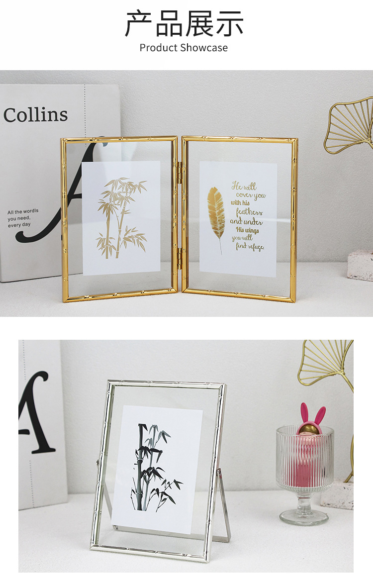 대나무 모양 양면 투명 유리 테이블 장식 골드 철제 금속 액자 710inch 샘플룸 장식 액자 현관
