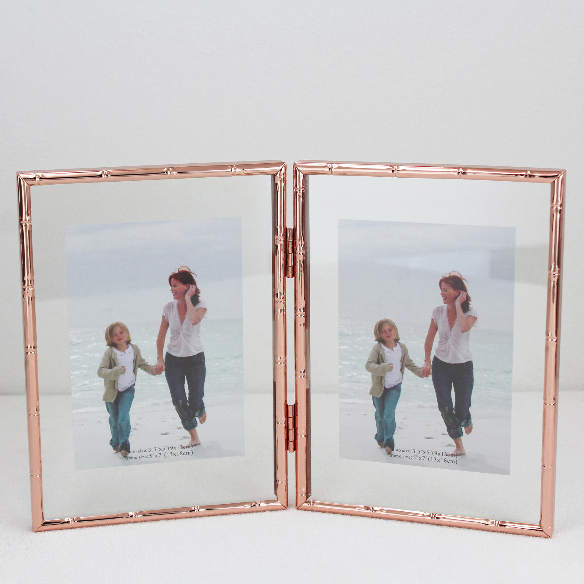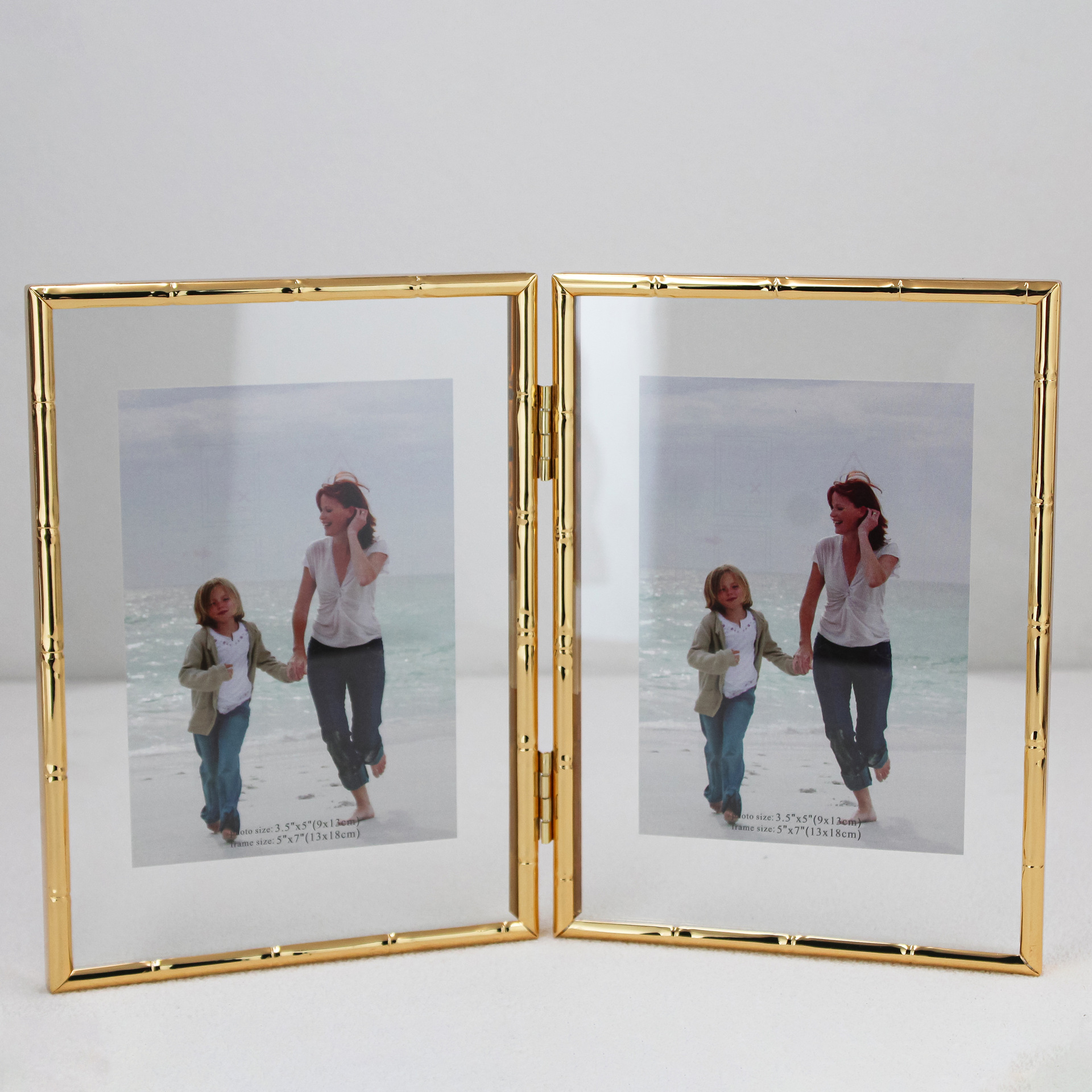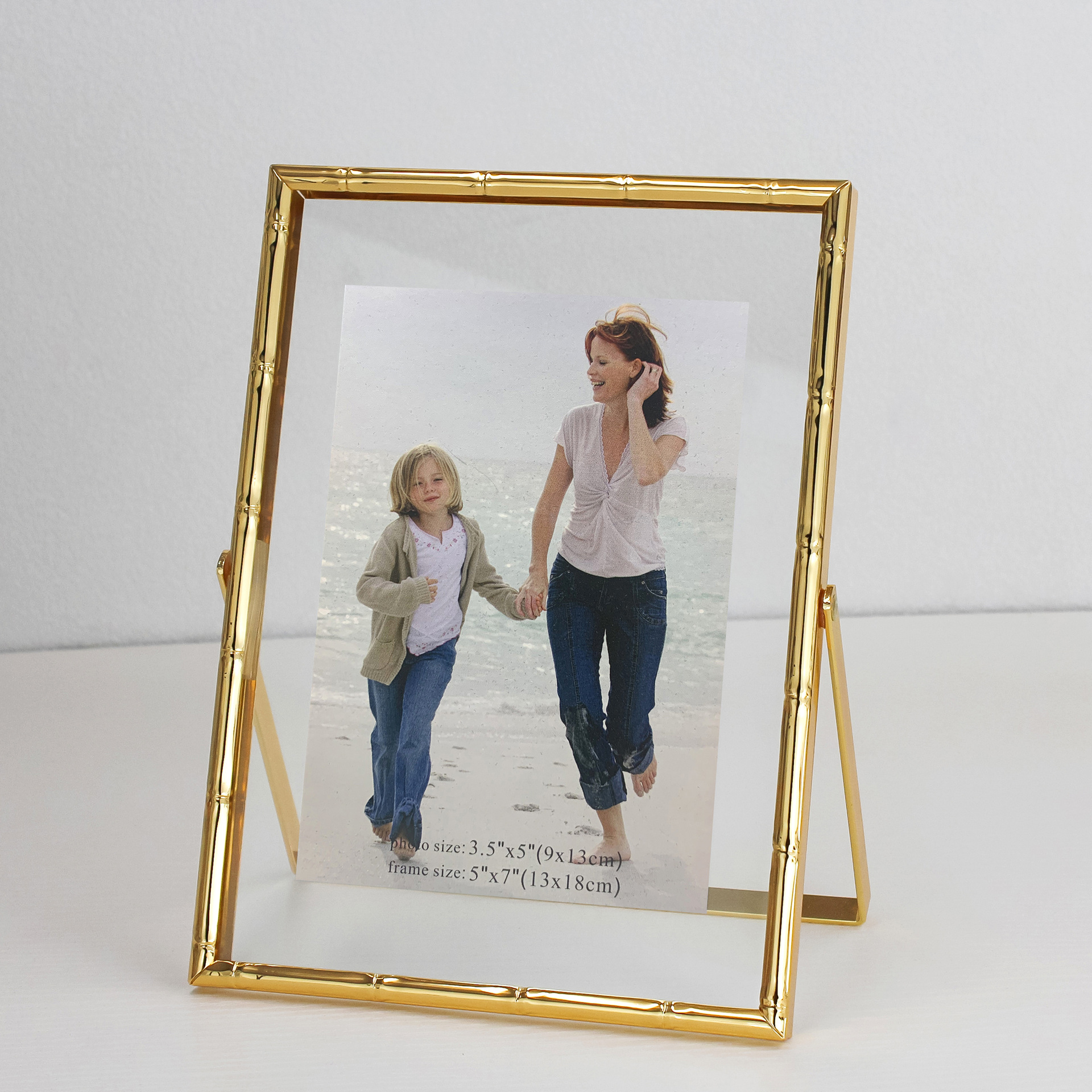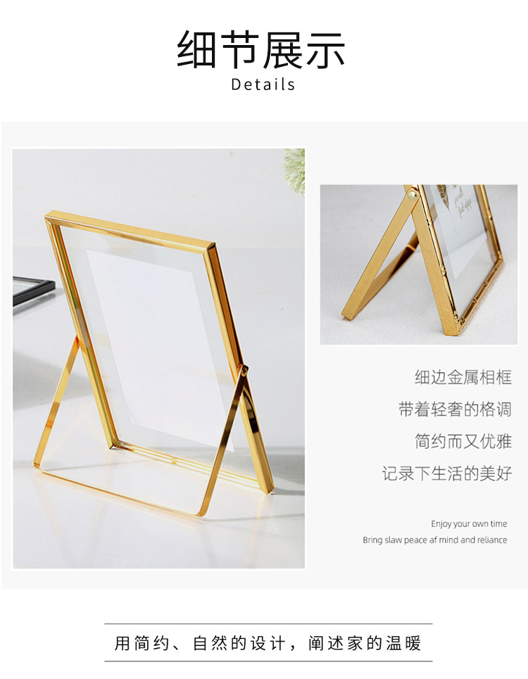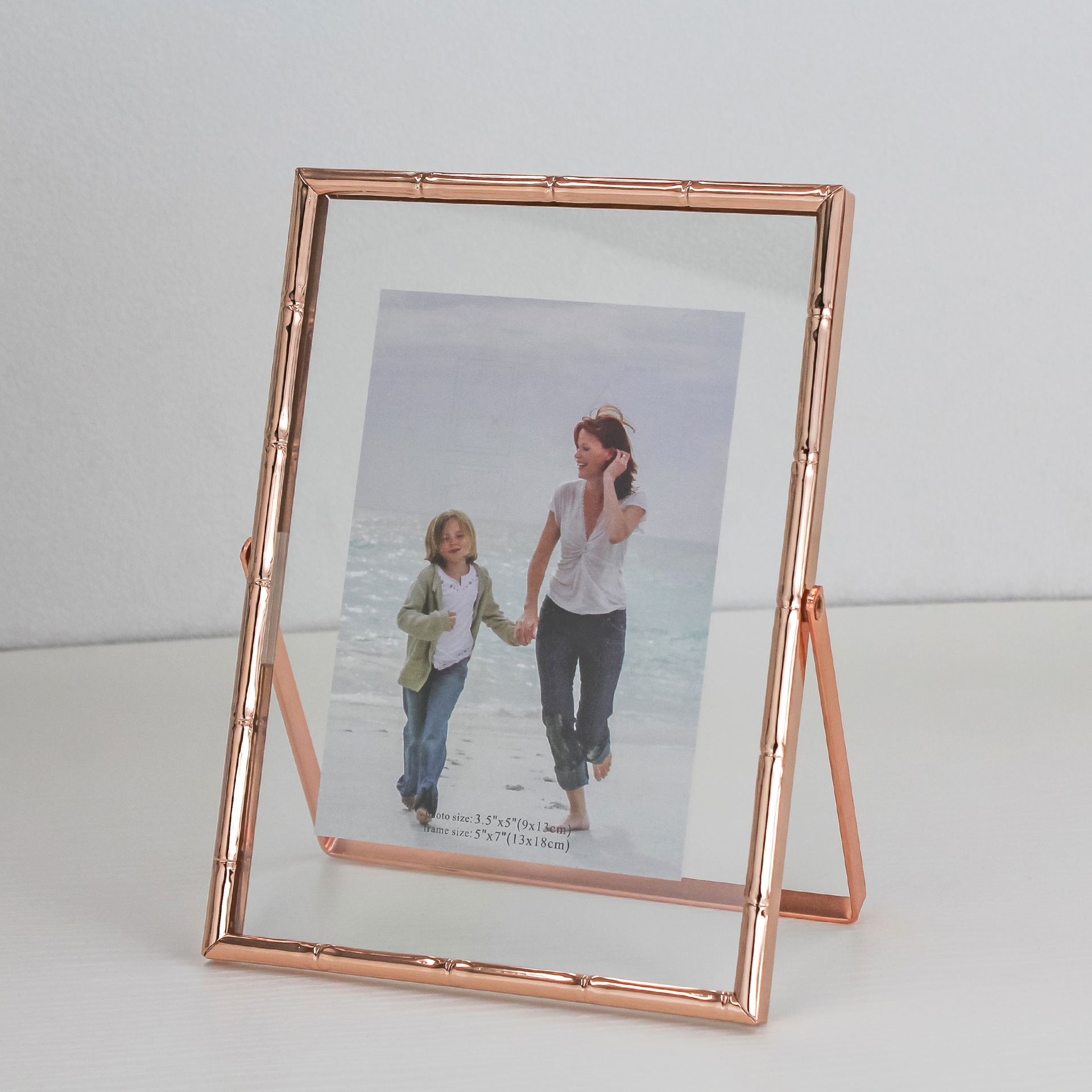 대나무 모양 양면 투명 유리 테이블 장식 골드 철제 금속 액자 710inch 샘플룸 장식 액자 현관