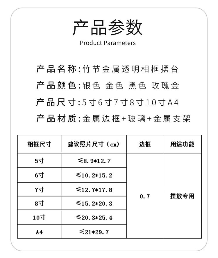 • 외부 프레임 10inch 8*10(≤20.3*25.4 사진에 적용 가능) 고화질 유리