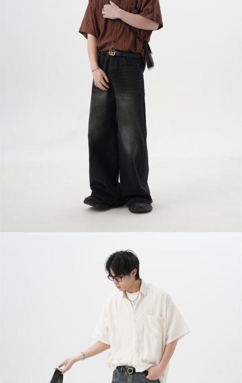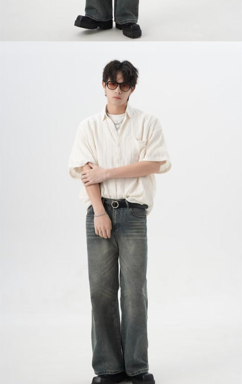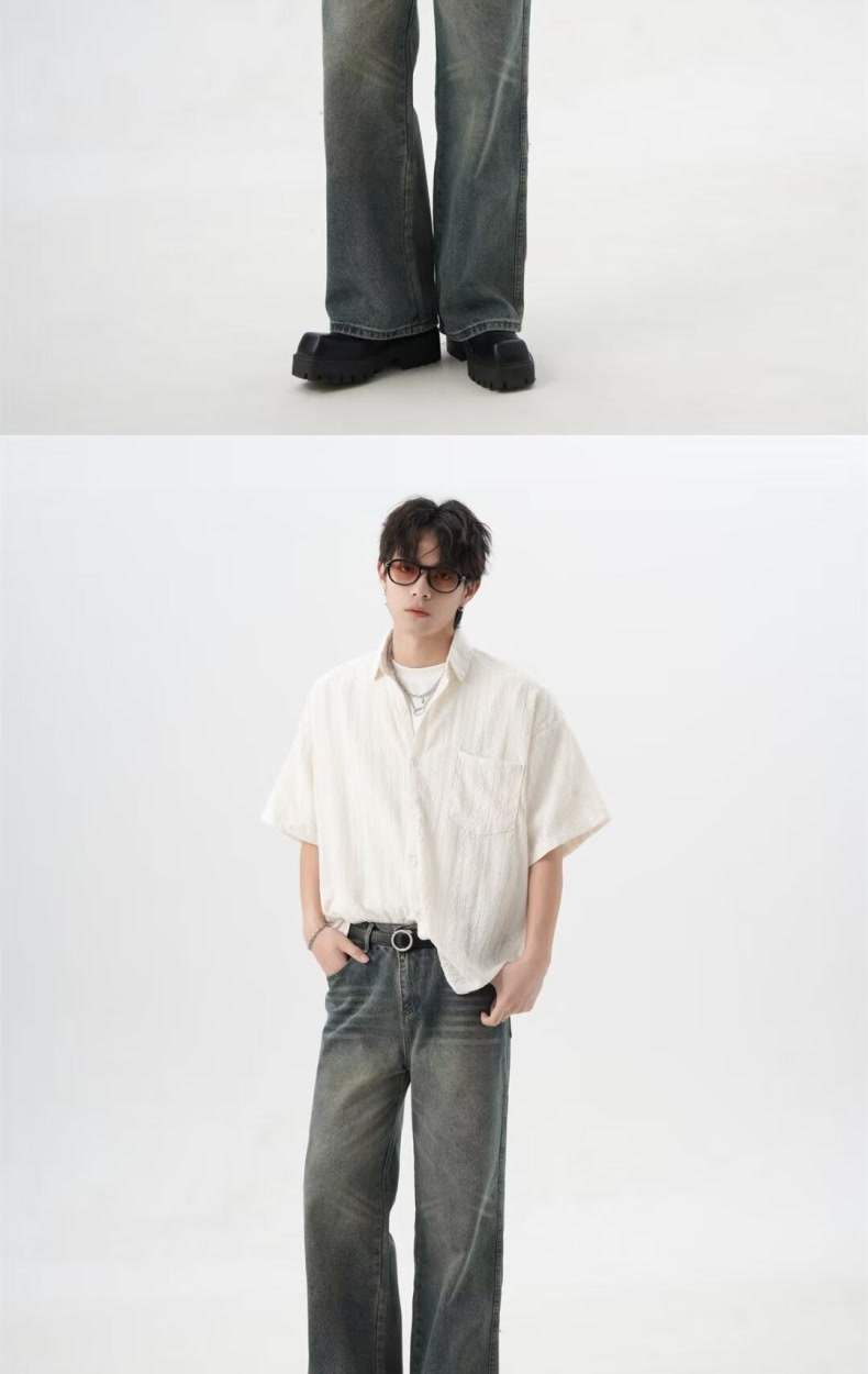 봄, 가을, 여름 새로운 스타일 일본 복고풍 단색 반팔 셔츠 유행 브랜드 루즈하고 다재다능한 잘 생긴 남성 캐주얼 셔츠스토어 가기