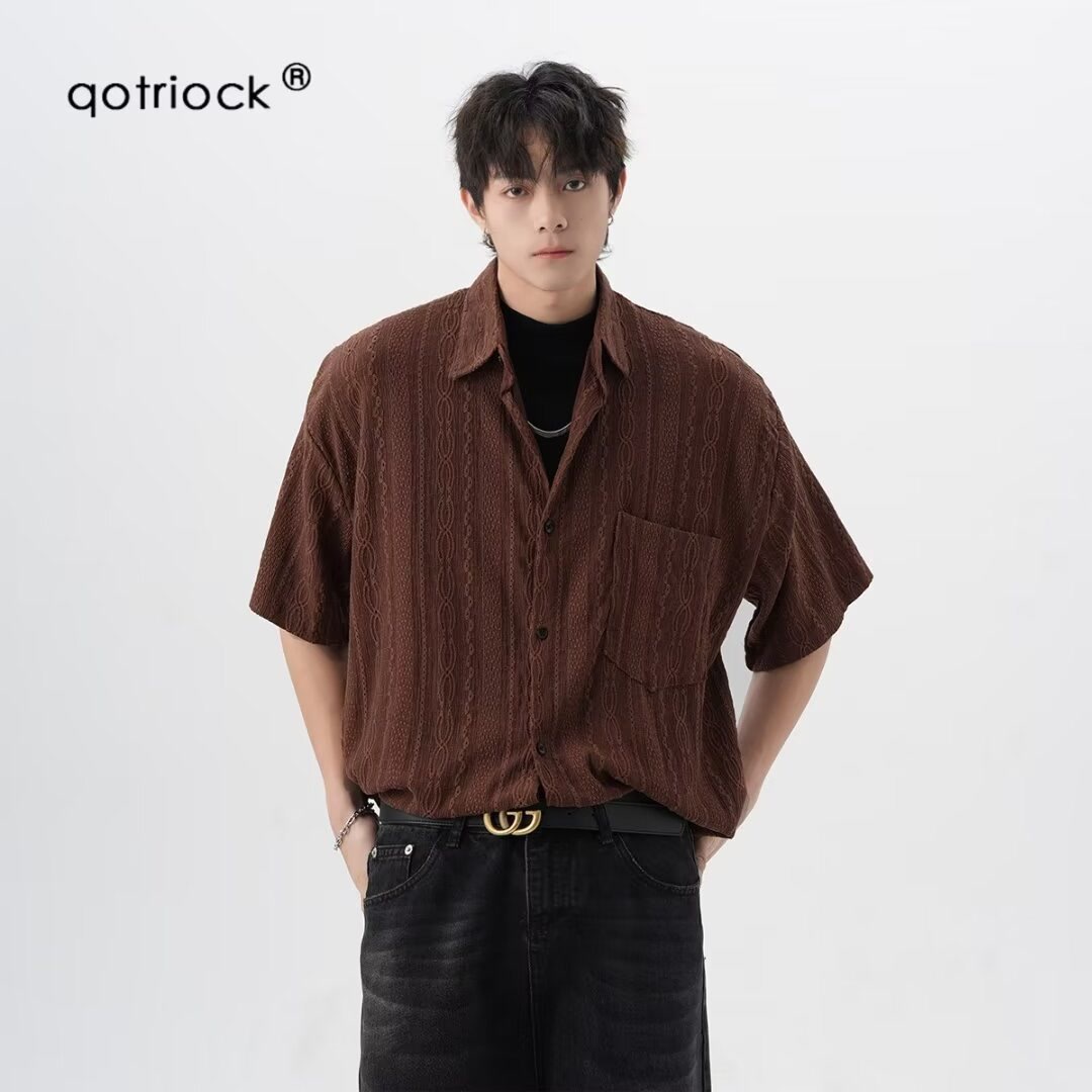 봄, 가을, 여름 새로운 스타일 일본 복고풍 단색 반팔 셔츠 유행 브랜드 루즈하고 다재다능한 잘 생긴 남성 캐주얼 셔츠