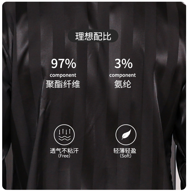 국경 간 아마존 잠옷 남자 여름 긴팔 바지 간단한 단색 줄무늬 봄과 가을 세트 아이스 실크 홈 옷스토어 가기