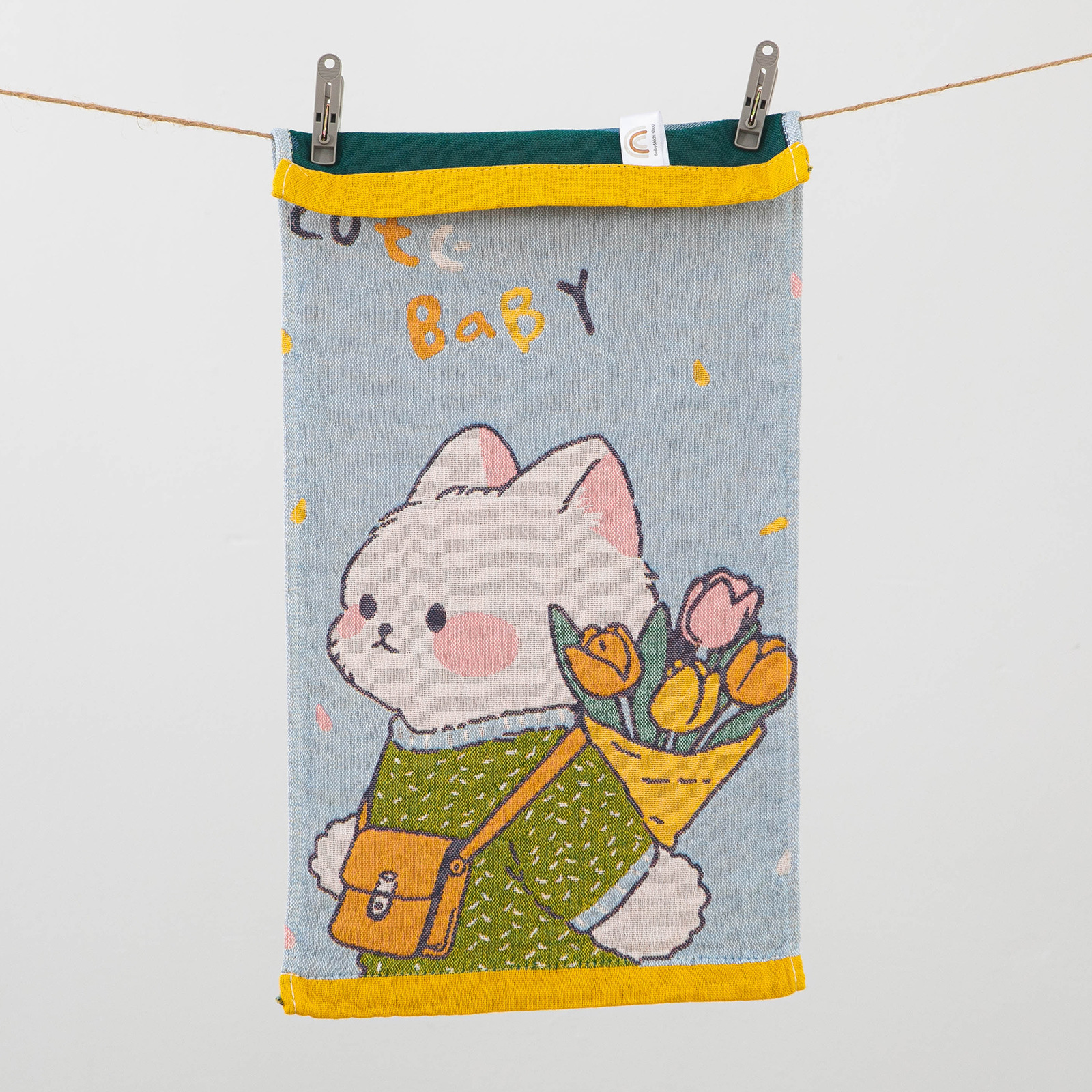 4层纯棉纱布儿童小毛巾,25X50cm,水洗棉,里外都是纯棉材质,比较柔软的一款小毛巾,很有质感,不掉色不掉毛,双面提花色织工艺