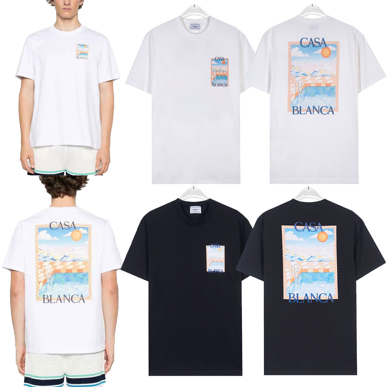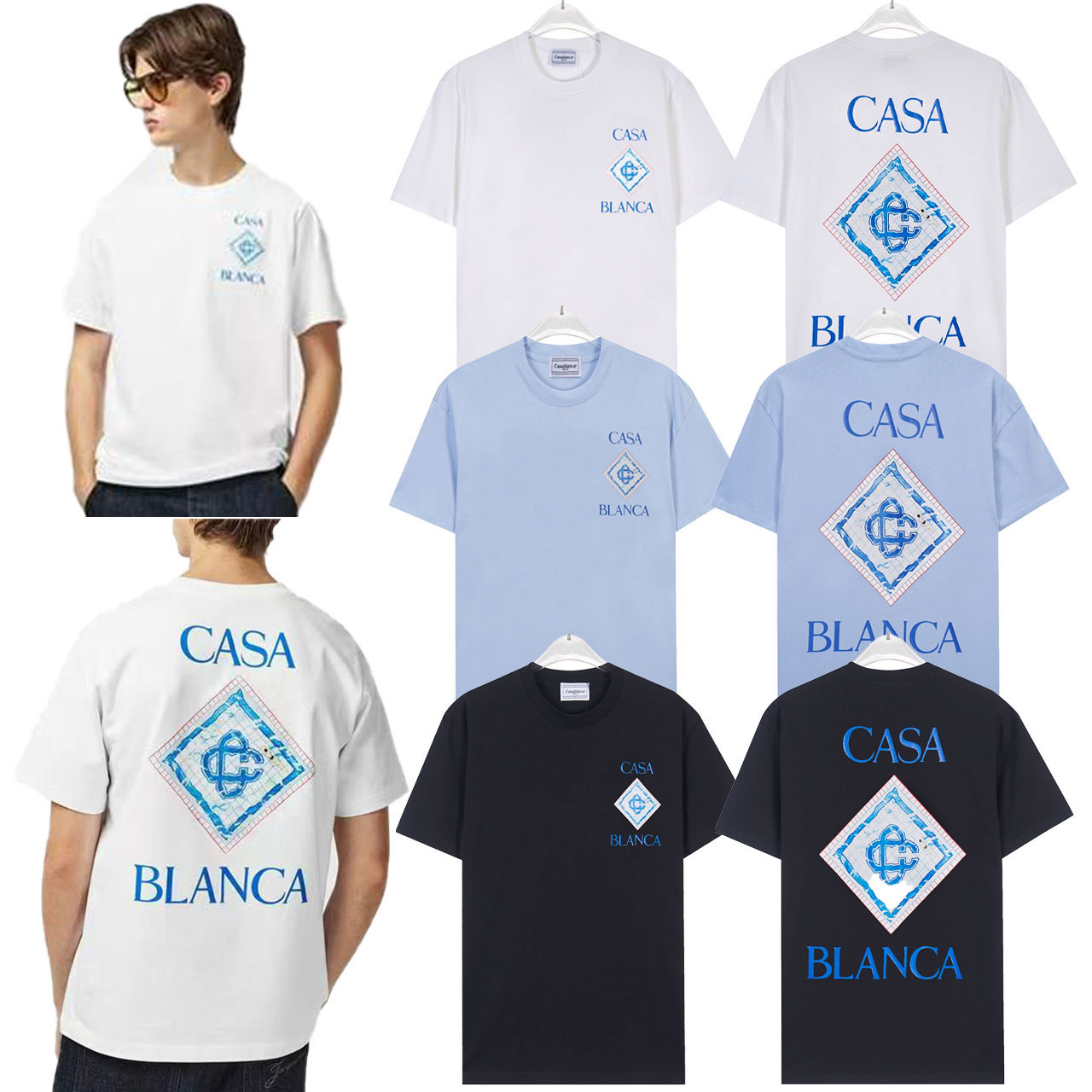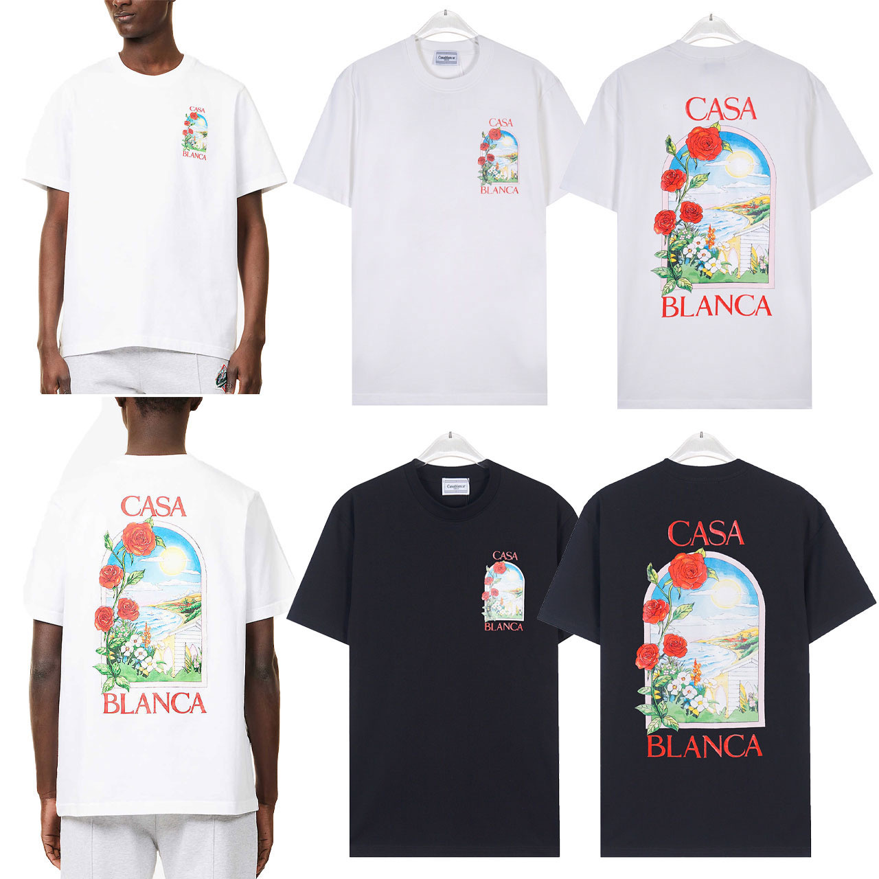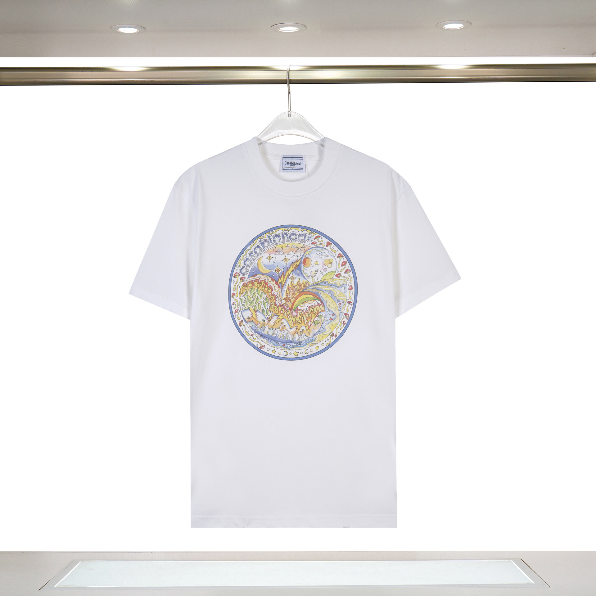 대외 무역 국경 간 CASA 카사 블랑카 반팔 크루 넥 반팔 티셔츠 판타지 게이트 레터베이스 셔츠스토어 가기