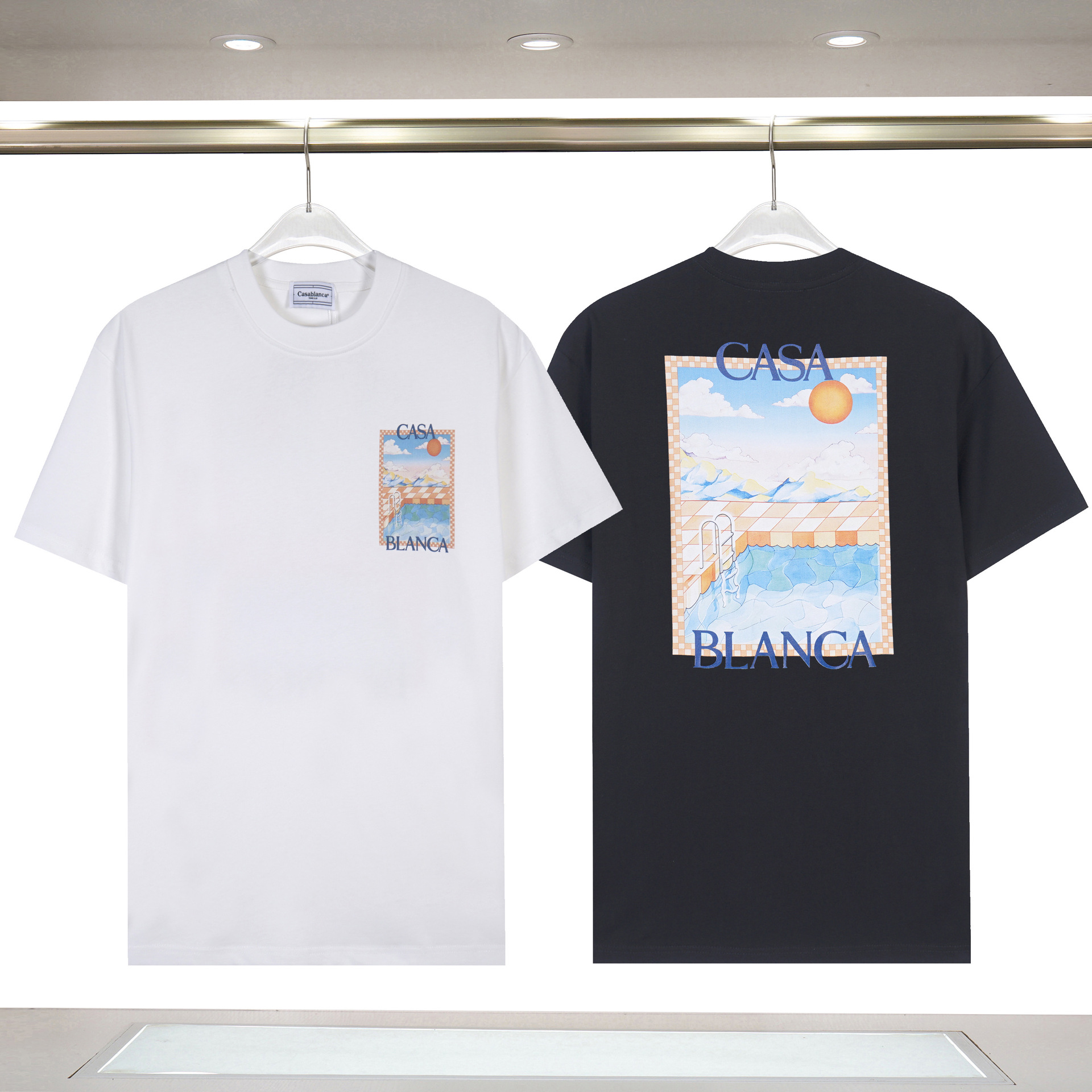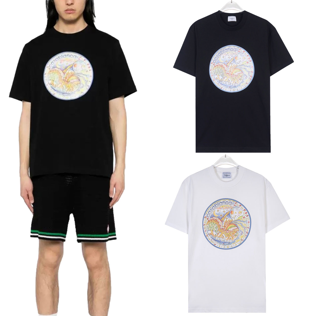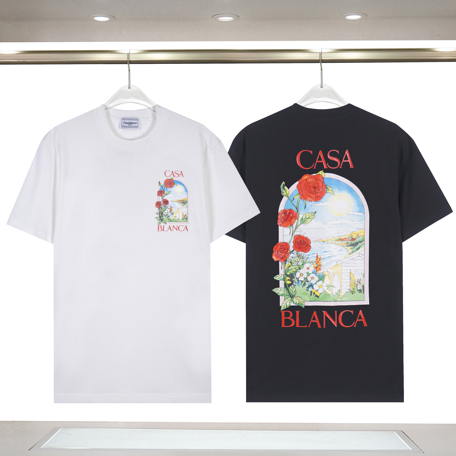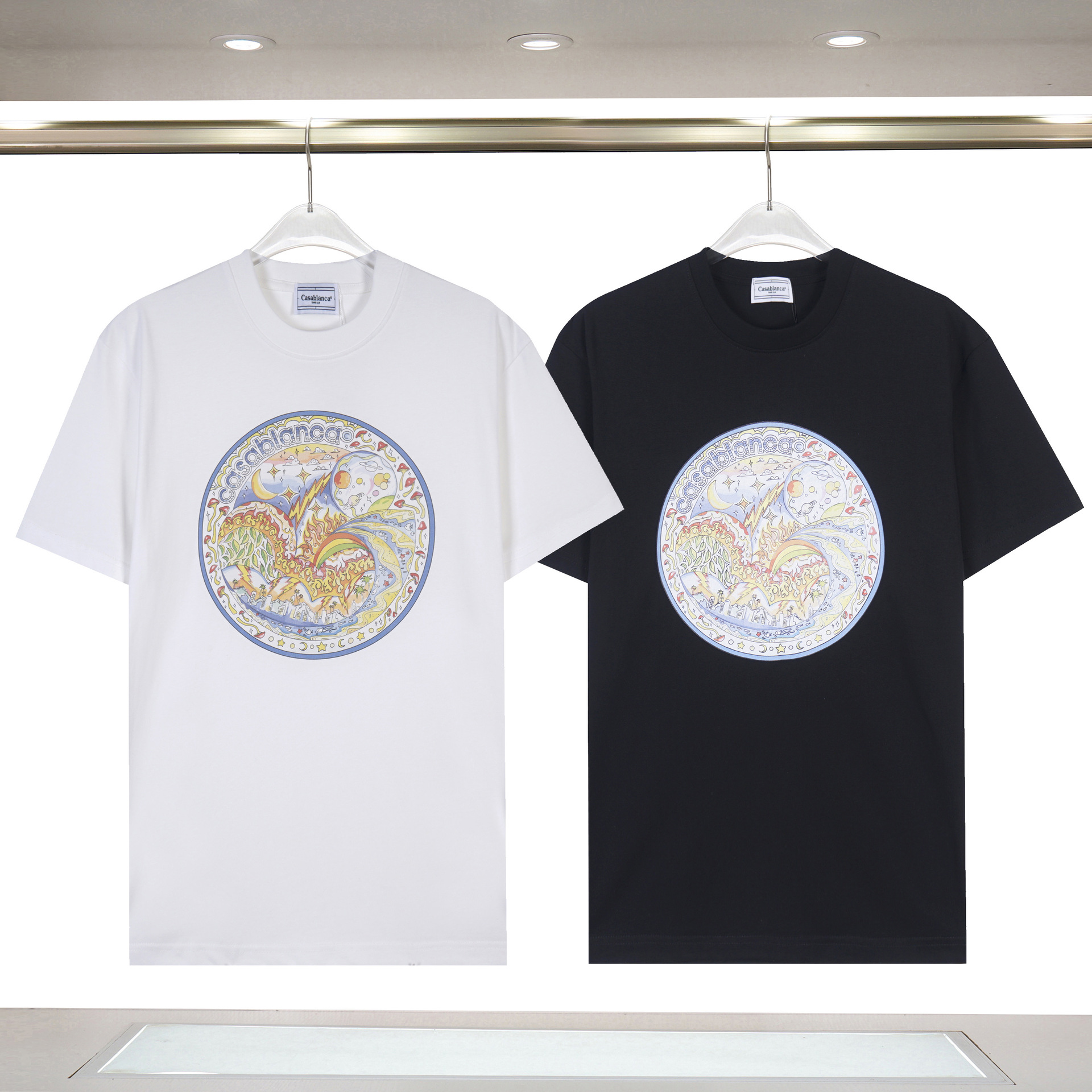 대외 무역 국경 간 CASA 카사 블랑카 반팔 크루 넥 반팔 티셔츠 판타지 게이트 레터베이스 셔츠스토어 가기
