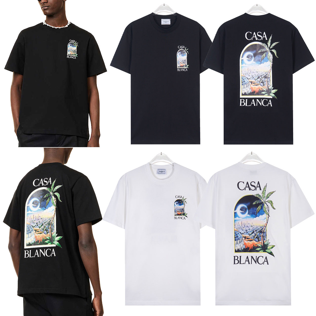 대외 무역 국경 간 CASA 카사 블랑카 반팔 크루 넥 반팔 티셔츠 판타지 게이트 레터베이스 셔츠