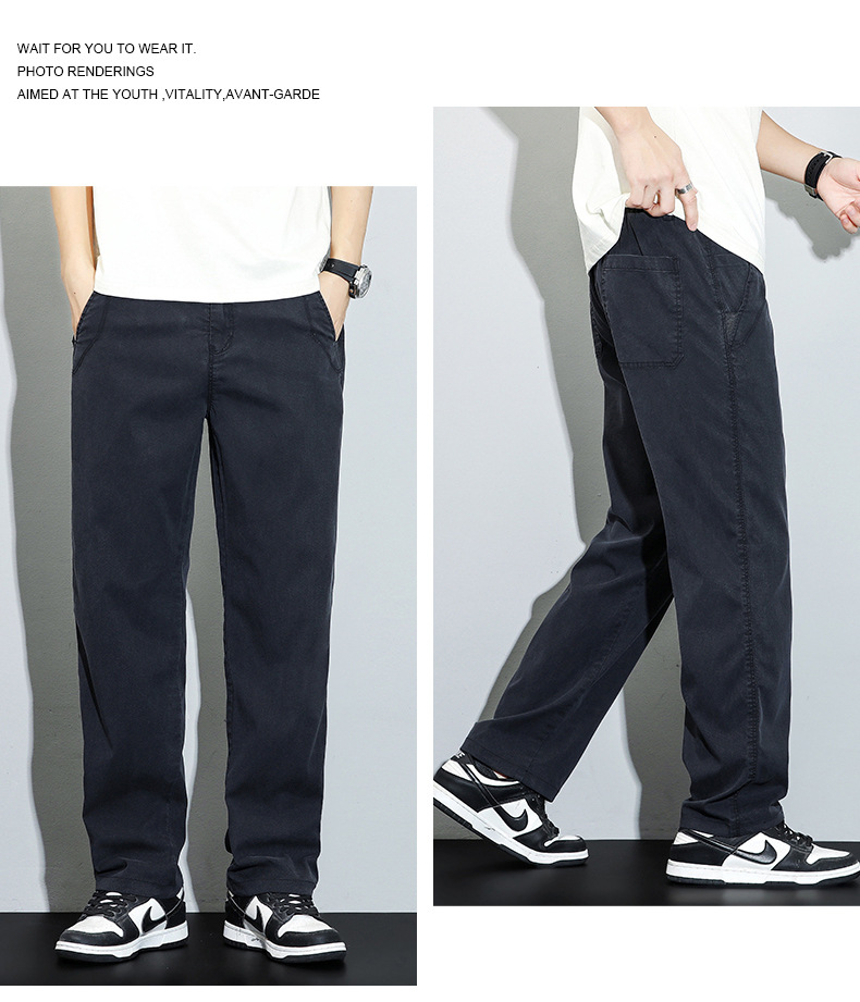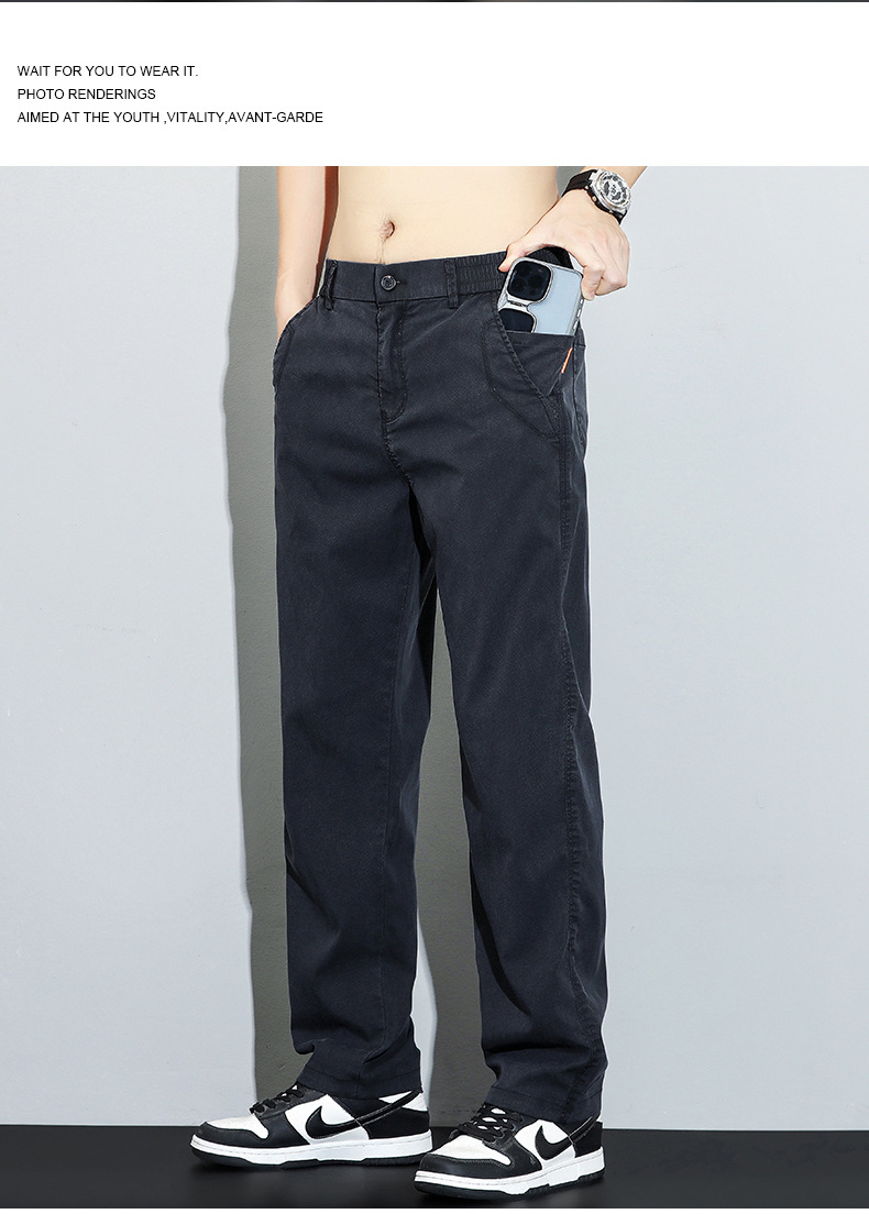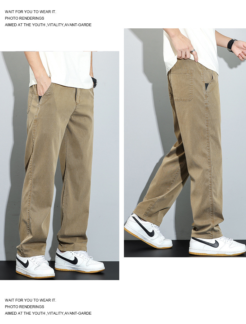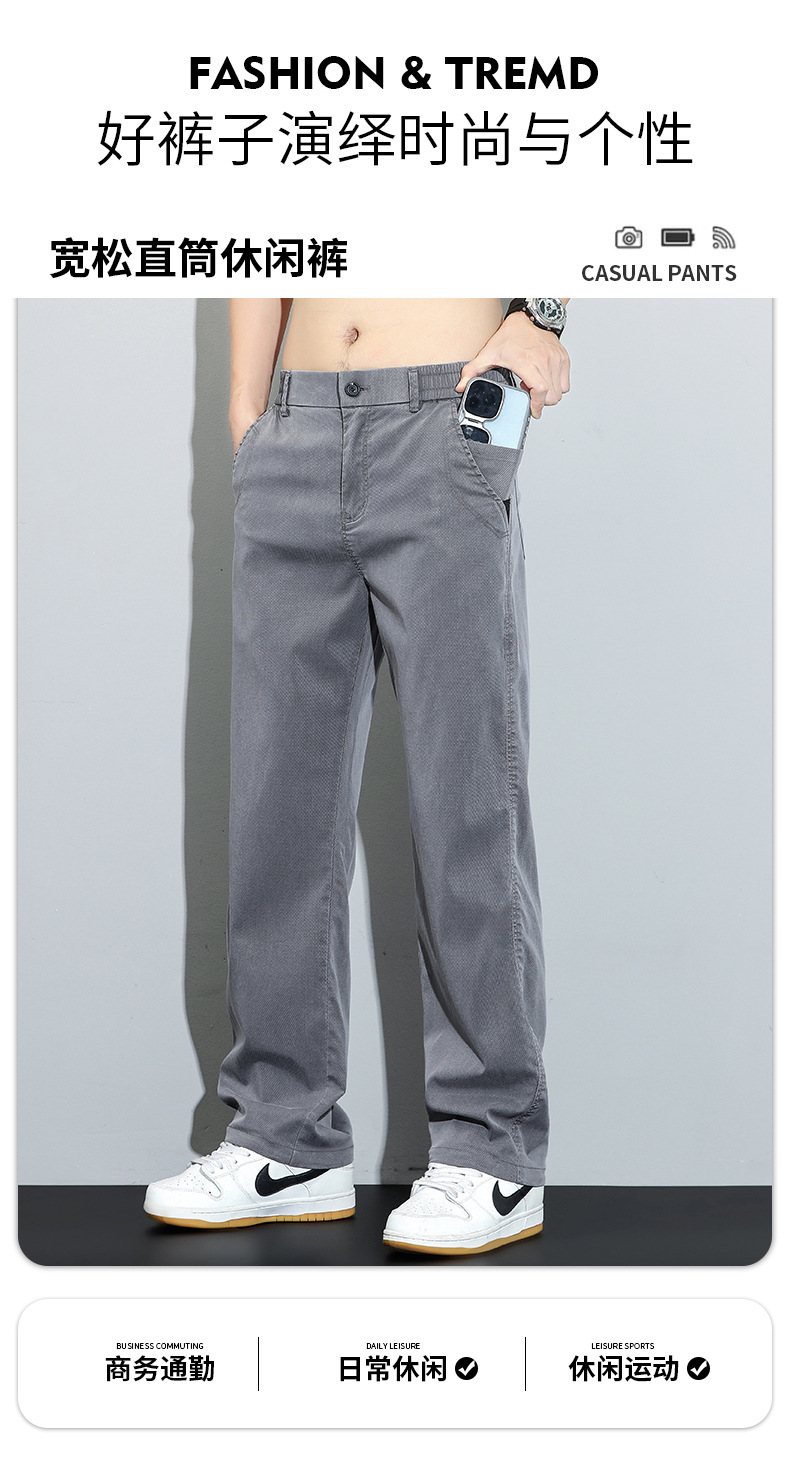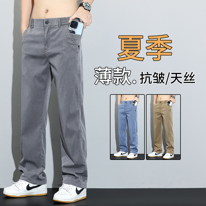 스트레이트 안티 주름 스트레이트 캐주얼 바지 봄과 여름 남자 편안한 올 매치 루즈 비즈니스 바지 남성용 트렌디 와이드 레그 바지