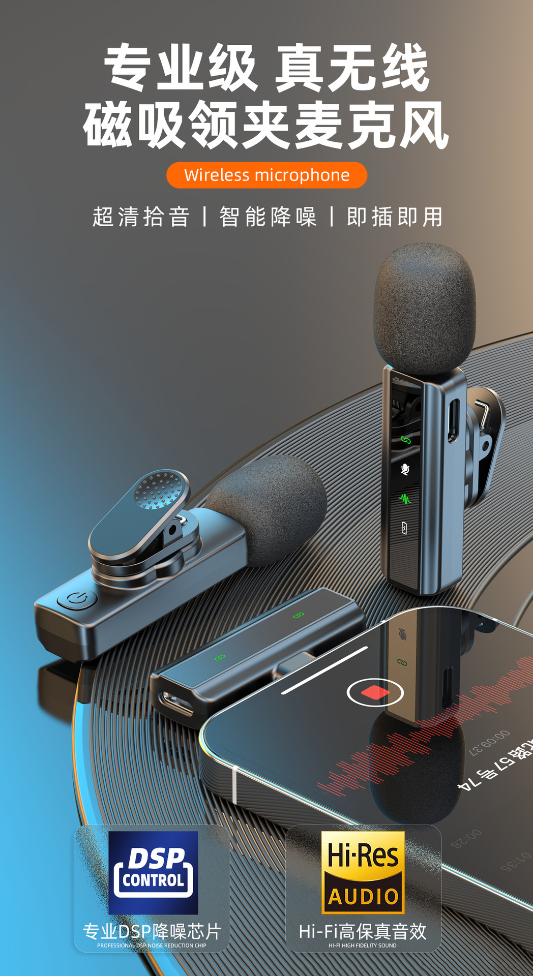 공장 개인 모델 새로운 J7 무선 칼라 클립 마이크 자기 흡입 야외 비디오 촬영 라이브 라디오 소음 감소 마이크