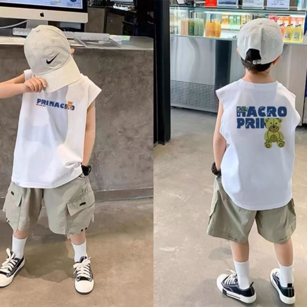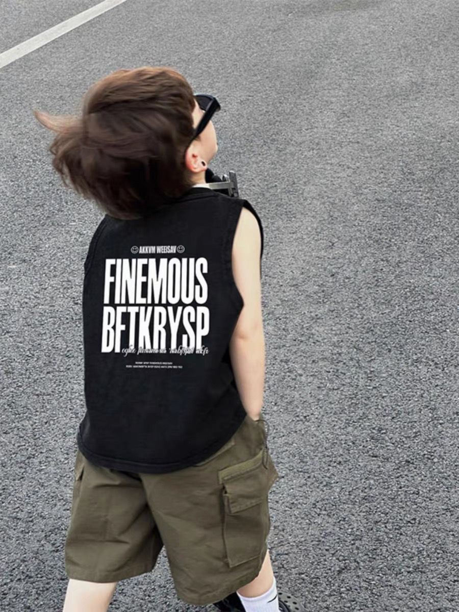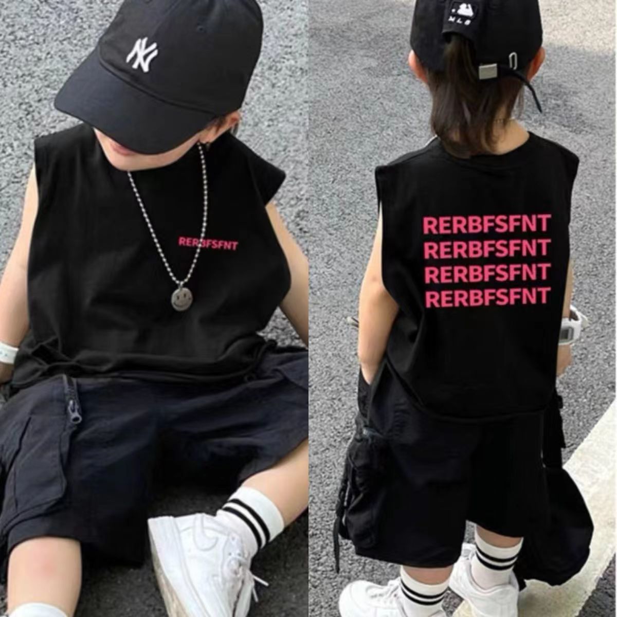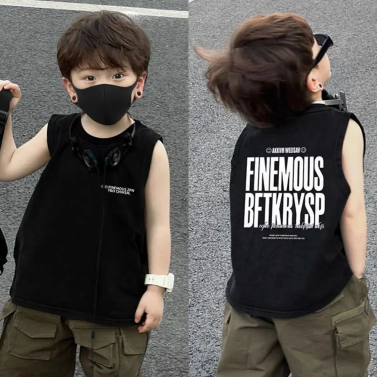 100% 면 중형 및 대형 어린이 미국 편지 민소매 조끼 2024 여름 새 소년 스포츠 웨이스트 코트 트렌디 12스토어 가기