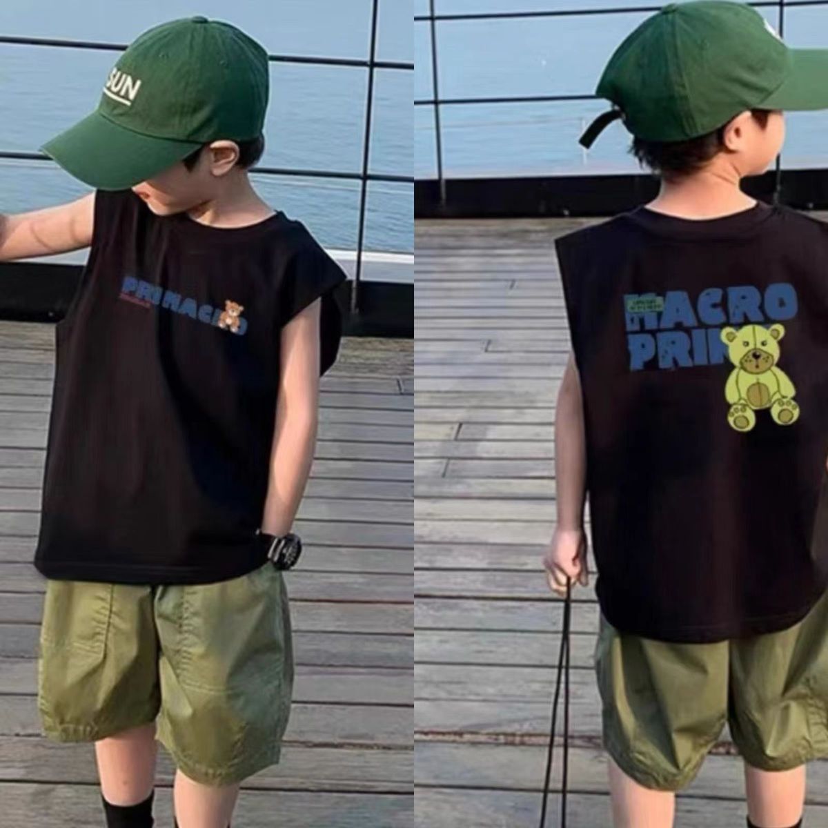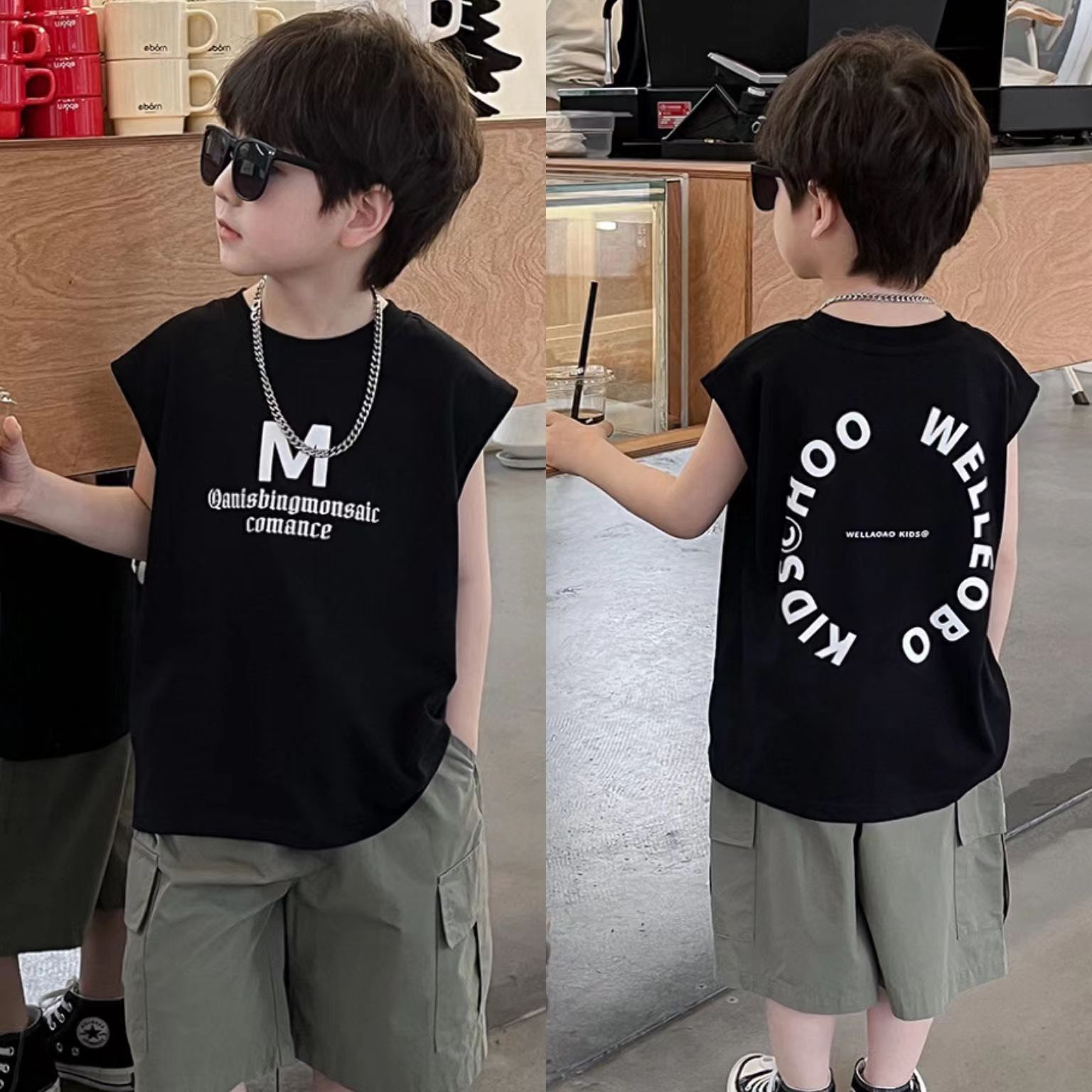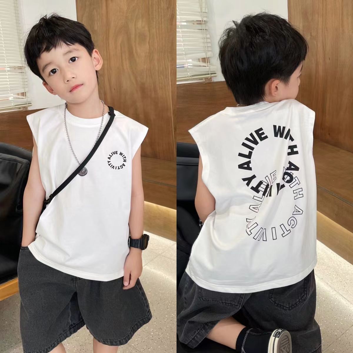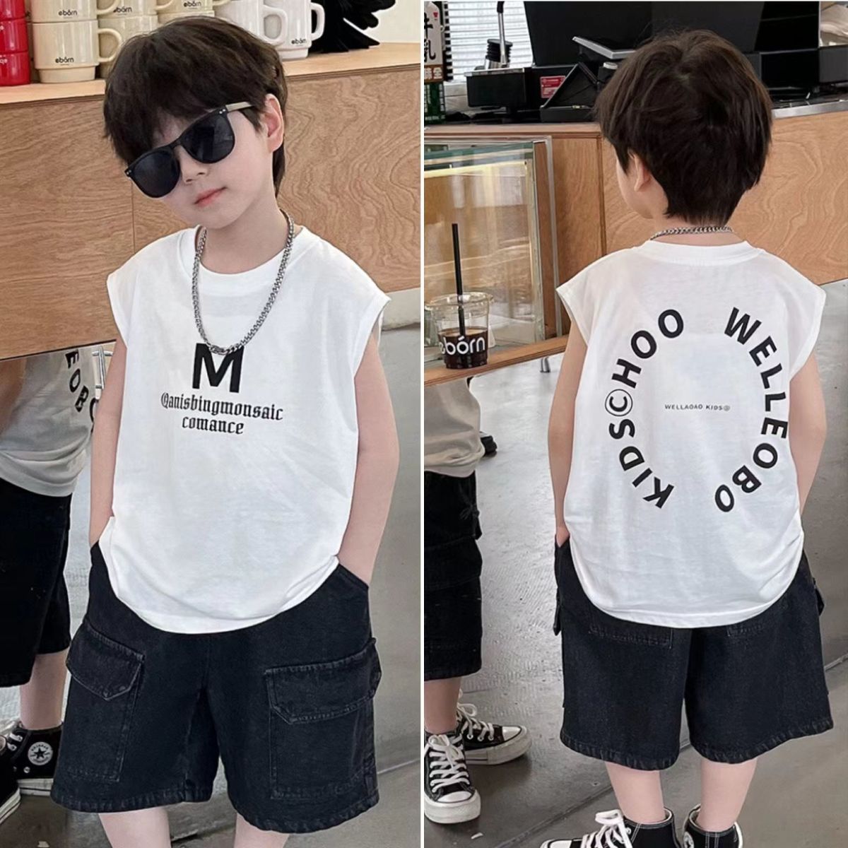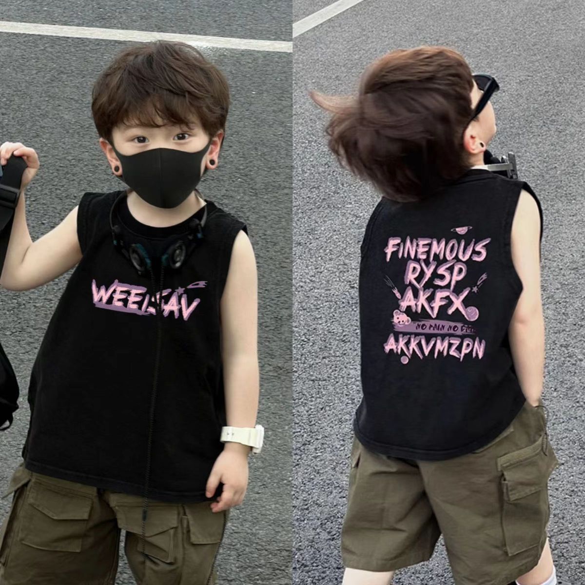 100% 면 중형 및 대형 어린이 미국 편지 민소매 조끼 2024 여름 새 소년 스포츠 웨이스트 코트 트렌디 12