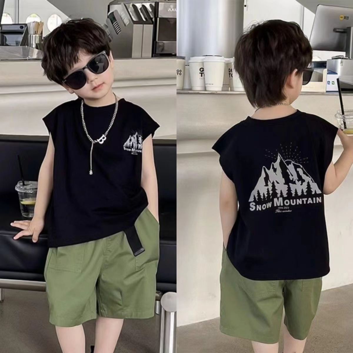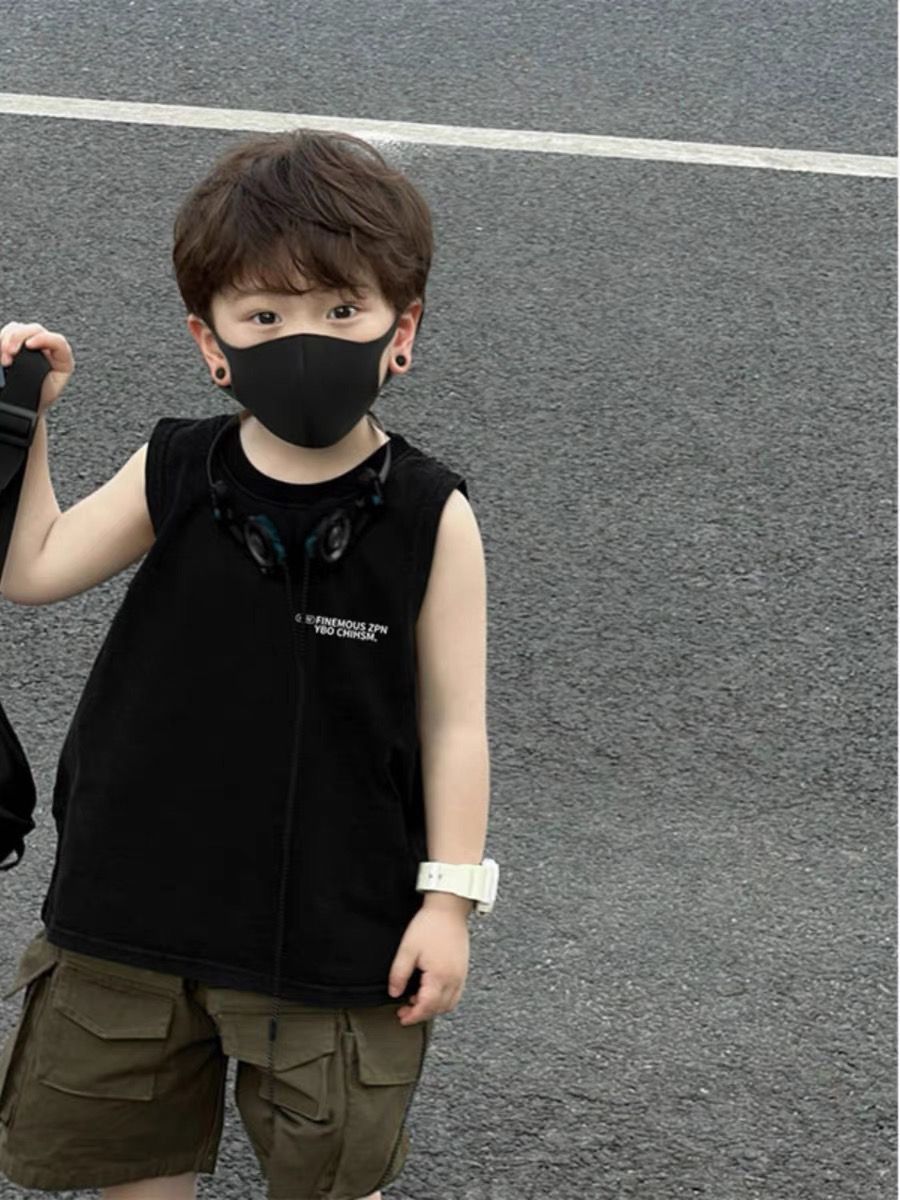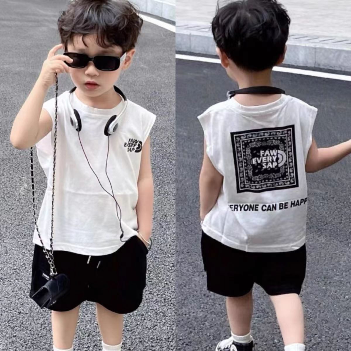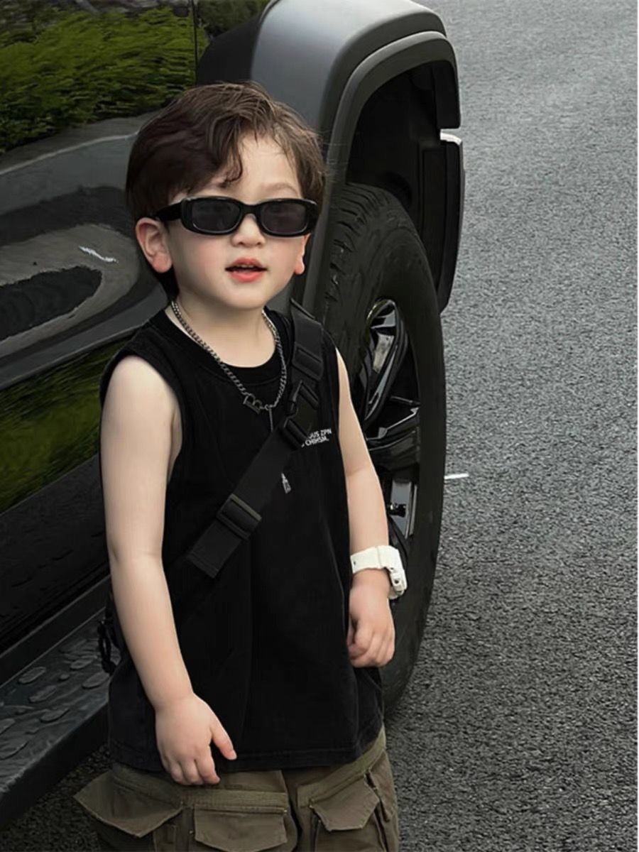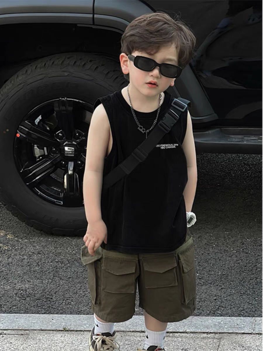 100% 면 중형 및 대형 어린이 미국 편지 민소매 조끼 2024 여름 새 소년 스포츠 웨이스트 코트 트렌디 12