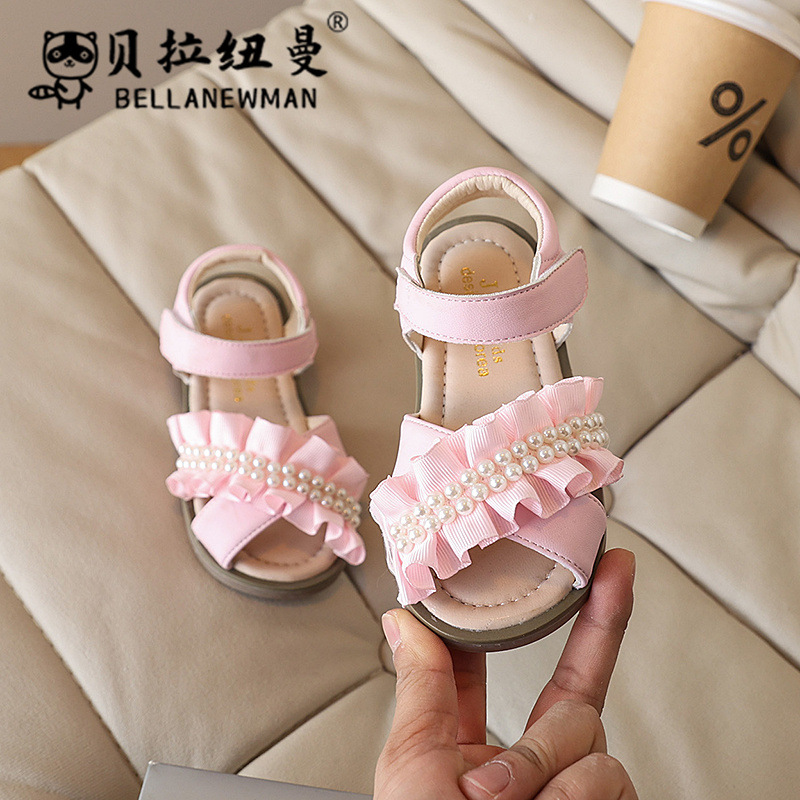 초이스 소녀 구슬 레이스 프린세스 샌들 2025 여름 새로운 어린이 패션 크로스 소프트 바닥 비치 신발스토어 가기