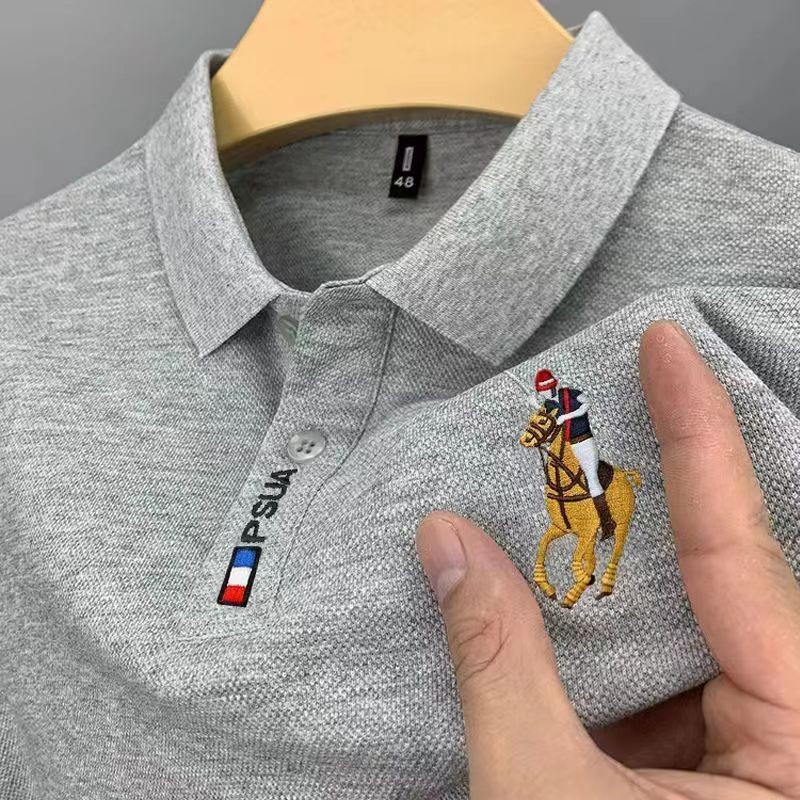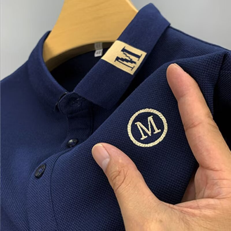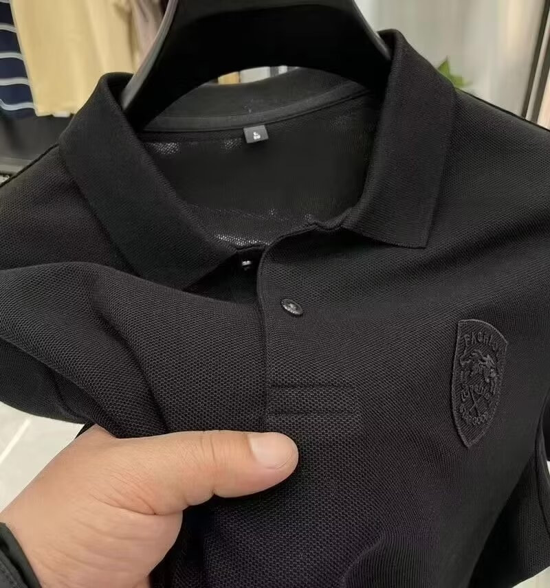 비즈니스 대외 무역 셔츠 여름 자수 옷깃 남성 반팔 티셔츠 플러스 사이즈 폴로 셔츠 트렌디 한 단색 남성 헤어 세대