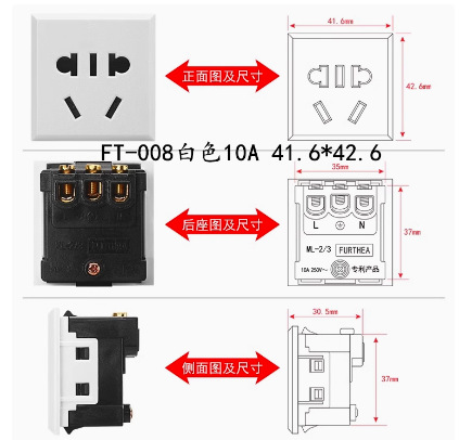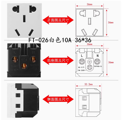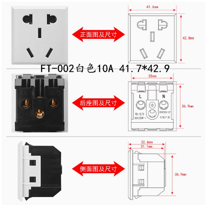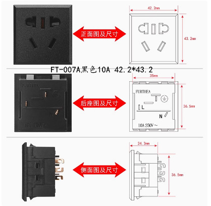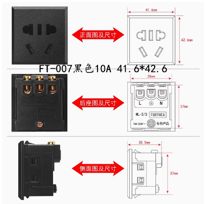 임베디드 5 홀 소켓 국가 표준 2 홀 또는 3 홀 데스크탑 AC 전원 소켓 카드 캐비닛 멀티 홀 소켓 모듈