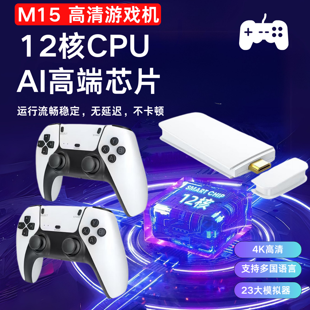 크로스보더 M15 게임기, 듀얼 컨트롤러, TV HDMI, 가정용 미니, PS1 게임 박스 지원, 레트로 콘솔
