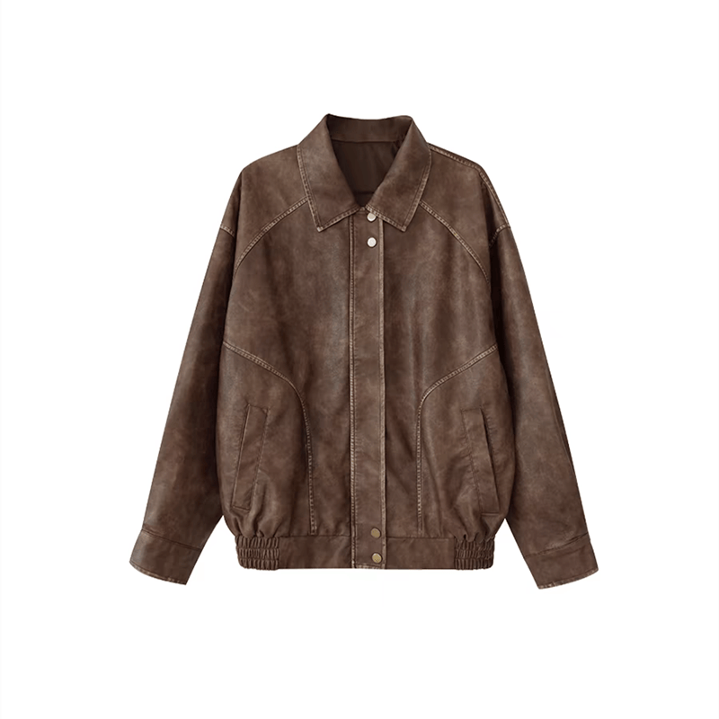 다크 브라운 가죽 여성 외투 봄과 가을 2025 새로운 가죽 자켓 미국 복고풍 쿨 사 바람 중 추시 같은 스타일