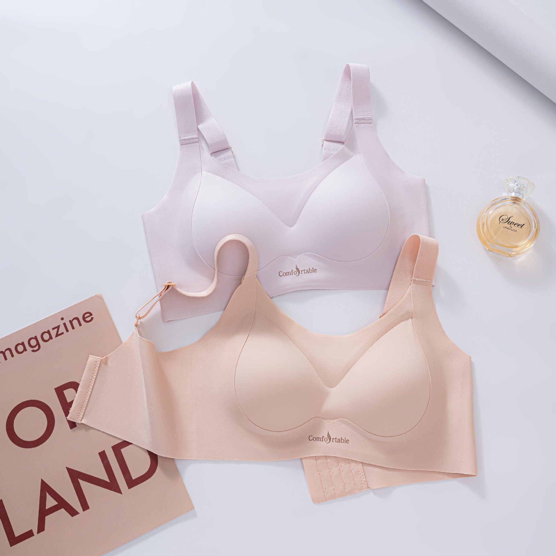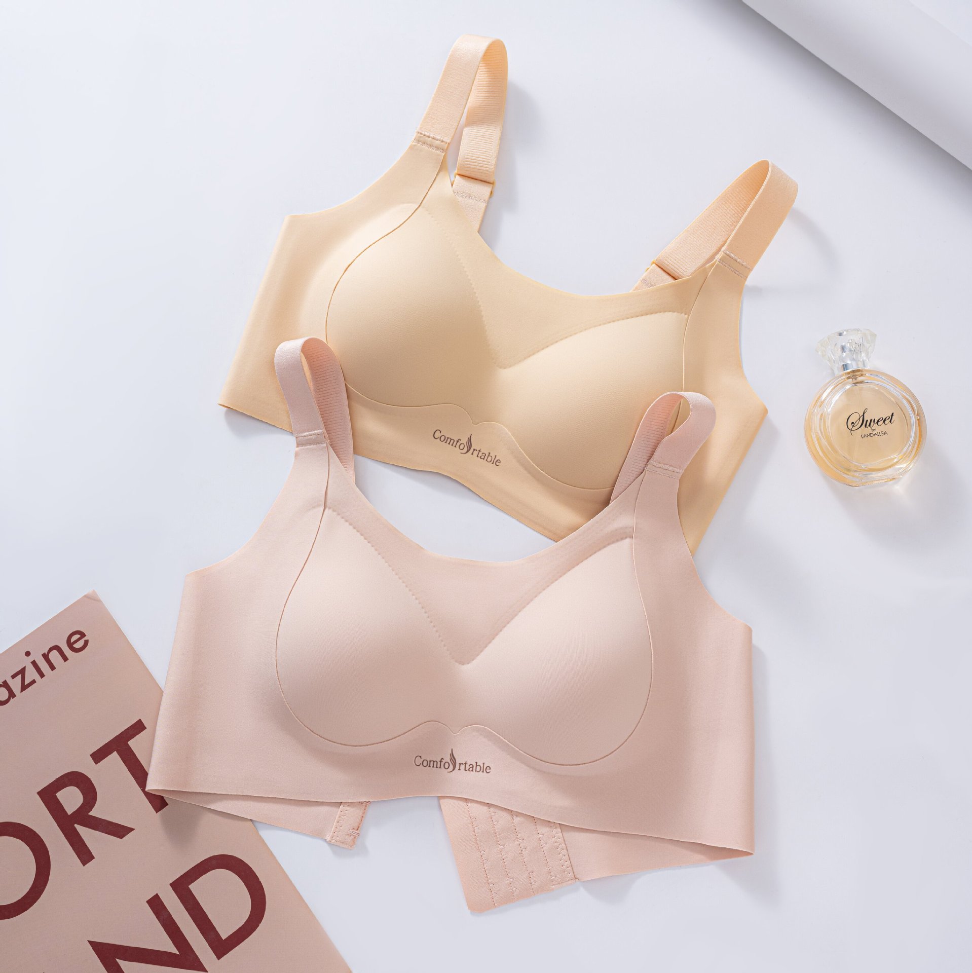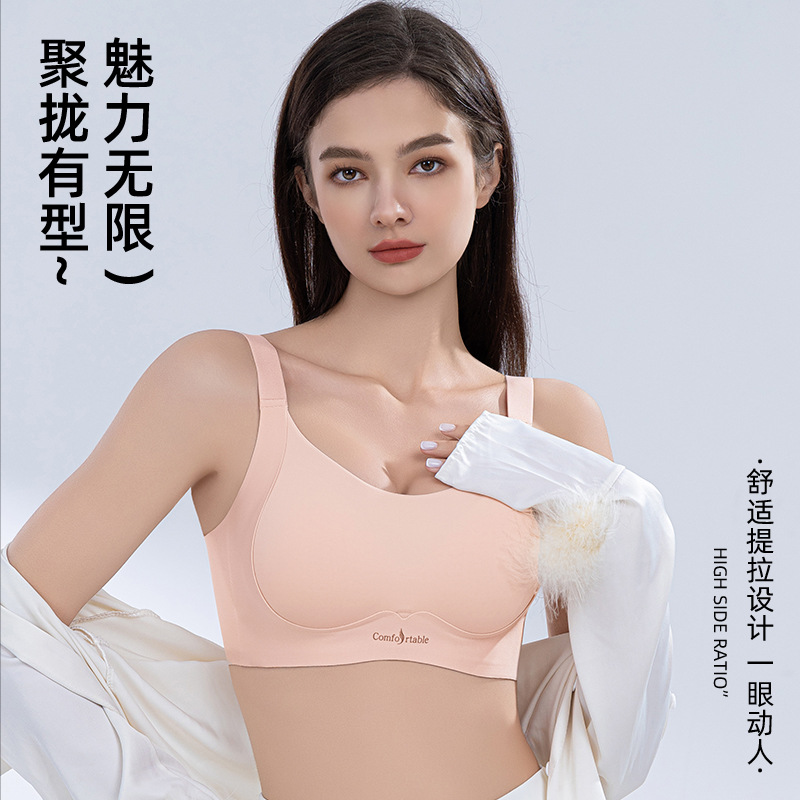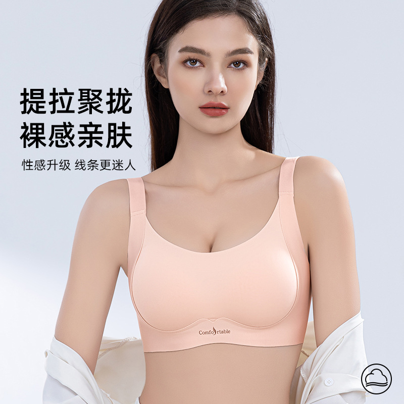 Traceless 속옷 고정 컵 조립식 패러 밀리 광택 대형 가슴 슬리밍 플러스 사이즈 속옷 경량 안티 처짐 브래지어