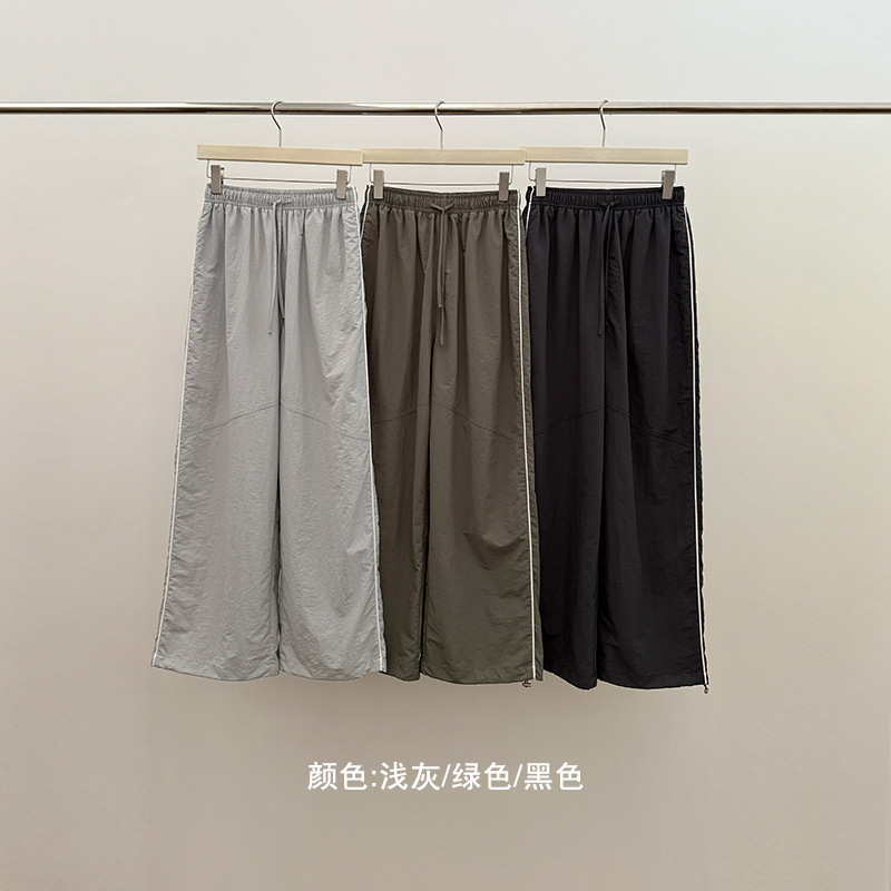 여성용 하이웨이스트 속건성 아메리칸 스트라이프 워크 팬츠, 루즈핏 슬림 와이드 팬츠 3780스토어 가기